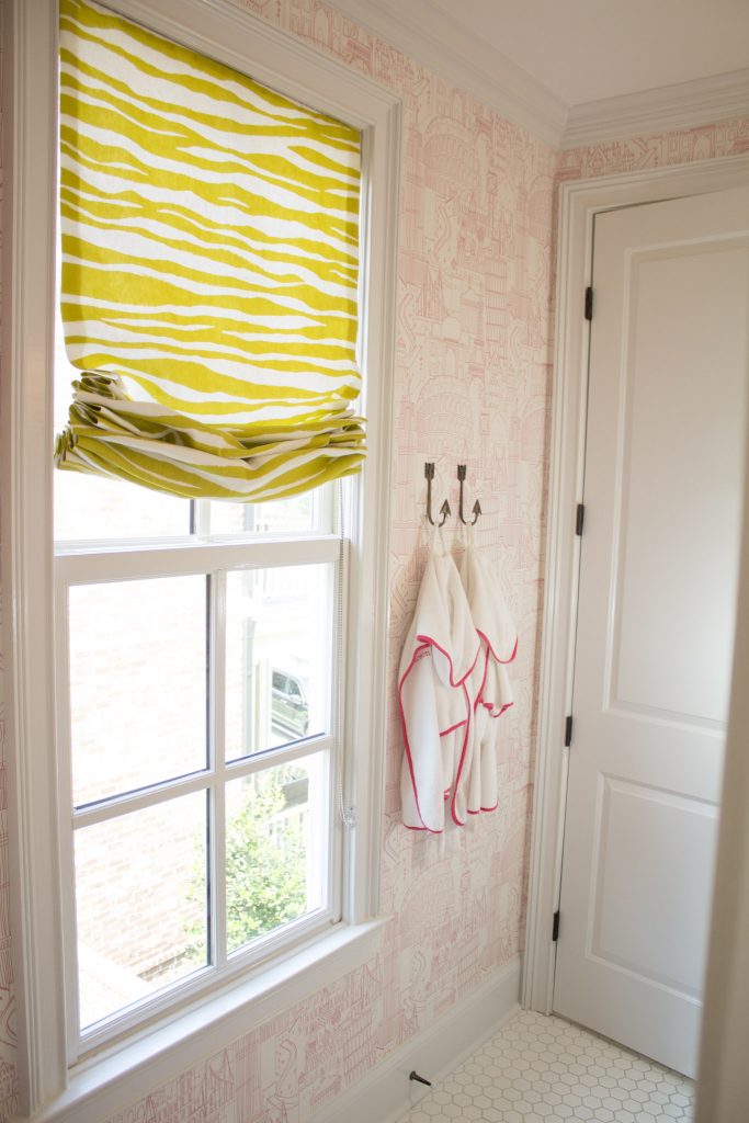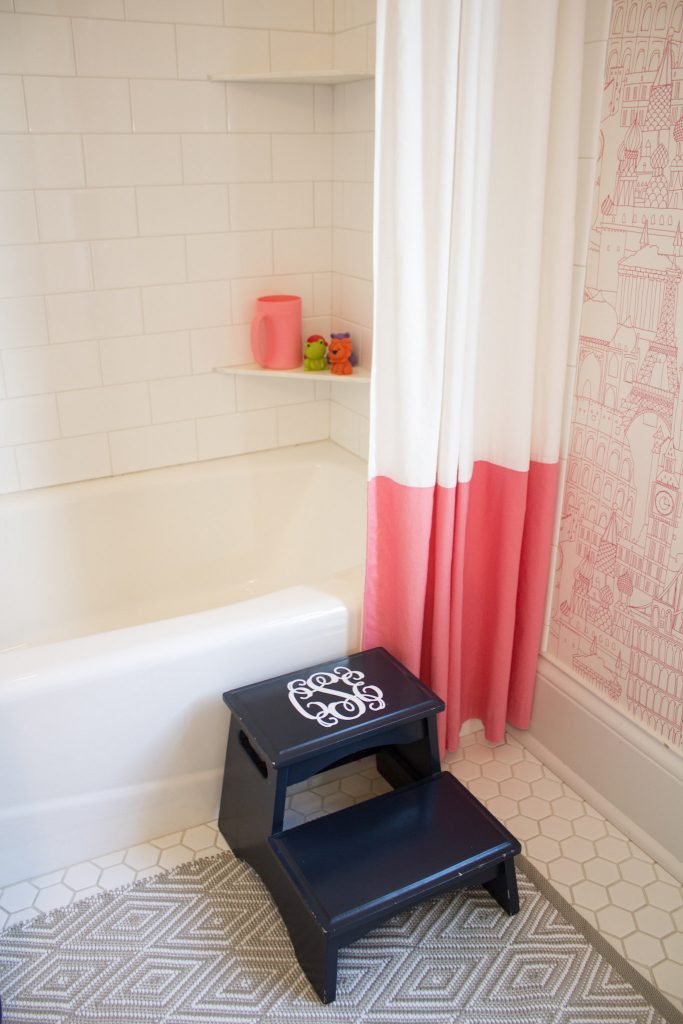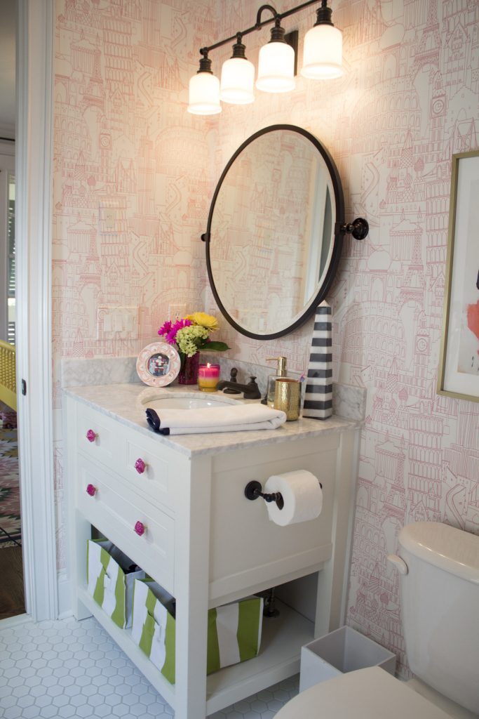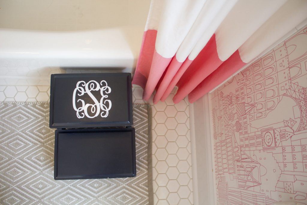 The finished product is just as fabulous as I dreamed and it livened up this otherwise classic white bathroom, which made me giddy to continue to decorate.