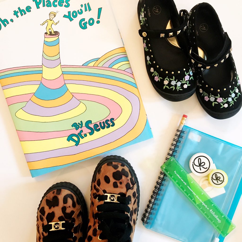 Moving on, let’s talk shoes… since the girls have developed QUITE their own personalities as of late, we headed online to shop for some new kicks for school! KidsShoes.com made it easy to find the latest and greatest in shoes for both my girls and they each got exactly what they wanted. Carson went the traditional route with these Flower Stud Mary Janes, while Caroline couldn’t contain herself when she saw these Cheetah High Top Sneakers.