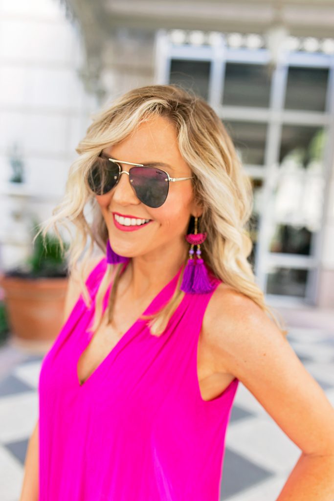 pink dress | sunglasses | earrings