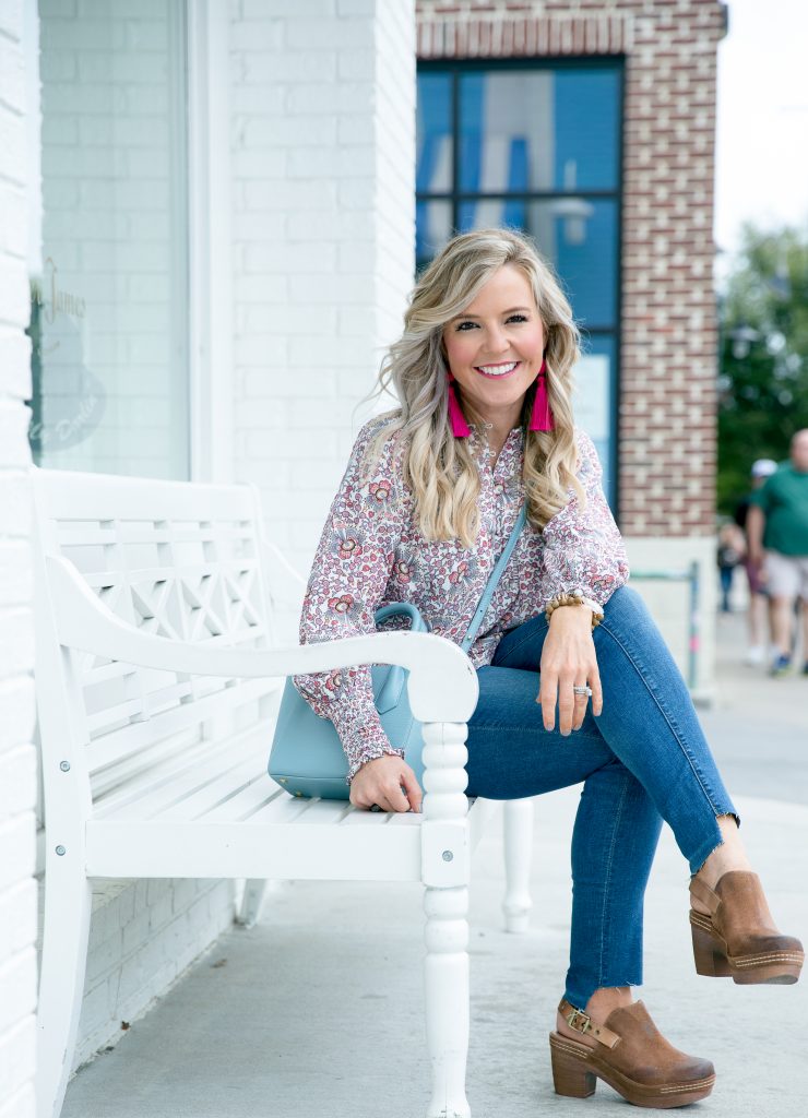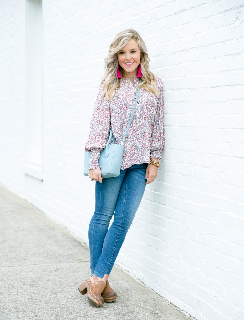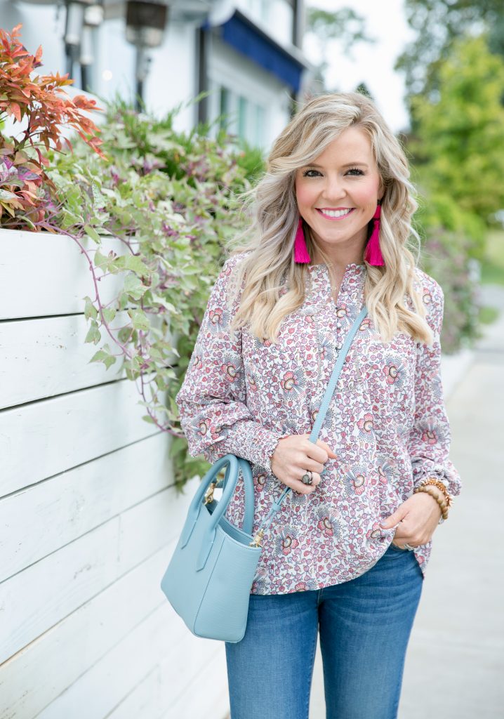 I love that floral blouse! The perfect summer to fall top! Love the earrings babe!