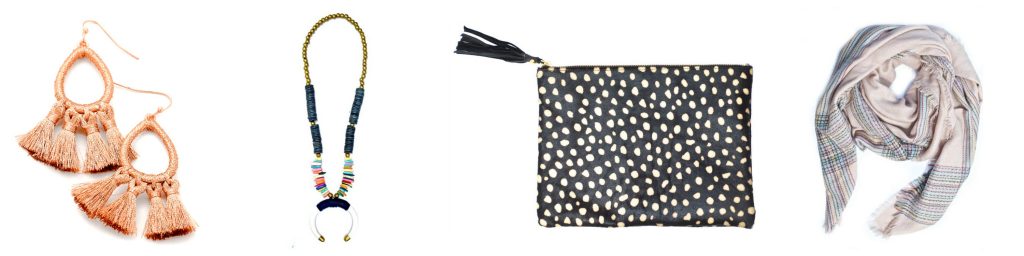 Halycon Tassel Earrings | Candy Mountain Necklace | Dalmation Clutch | Harlow Blanket Scarf