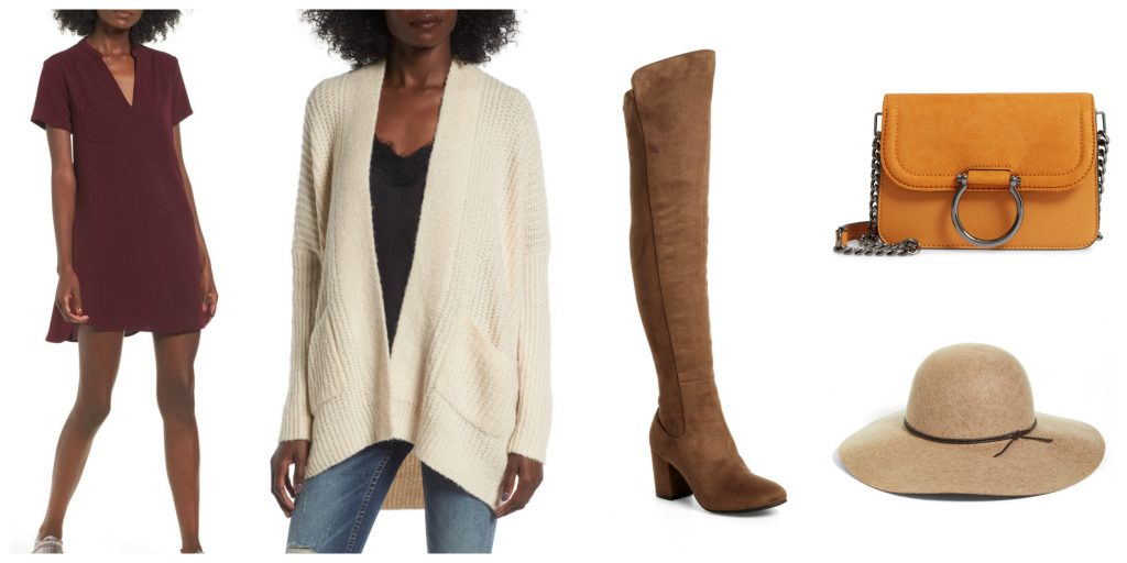 Ready to take it one step more and piece together with a fun staple cardigan, booties, and accessories to make it more fall appropriate?? Here is a fun little idea board I created to assemble one winning look for cooler temps coming oh so soon: