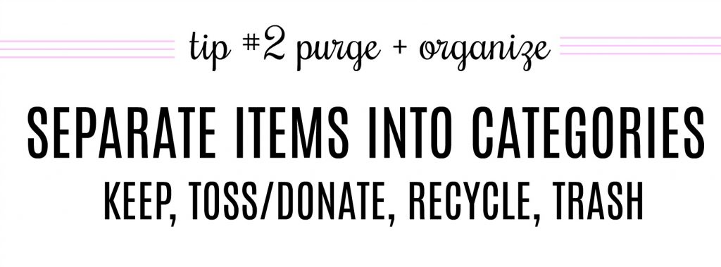Purge before you move out… yes, it feels so good to toss stuff aside and I am always one to get rid of the clutter. I started purging about a month prior to us moving out… the summer stuff that the girls had outgrown, random kitchen gadgets that were never used, duplicates of toys, etc. You name it, I went through it. Just know that once you move, the LAST thing you are going to want to do is try to sell something or end up donating more… so, gather a few empty cardboard boxes and label them into the four categories seen above. And yes, you can always make a “maybe” pile that you can come back to. My best advice? If you haven’t used it in a year, get rid of it!!!