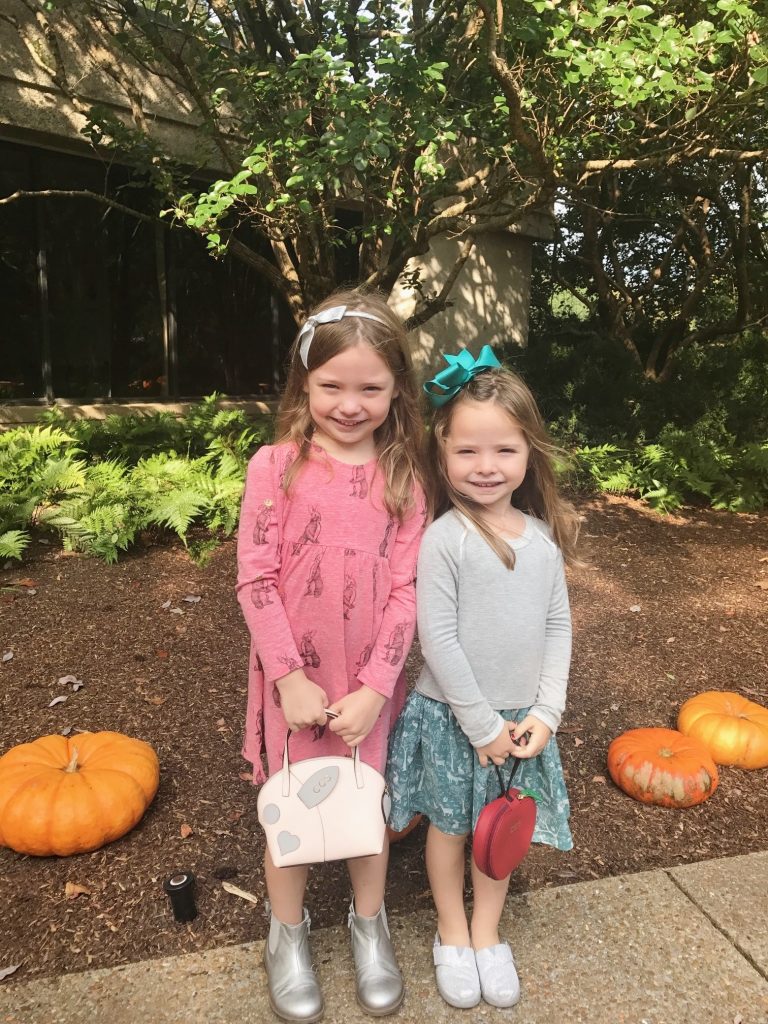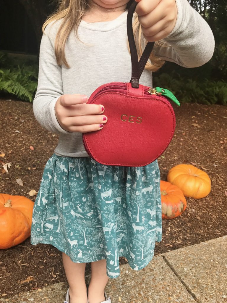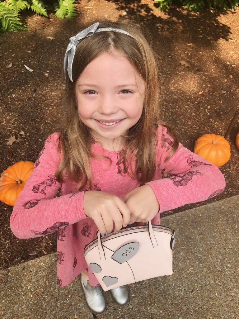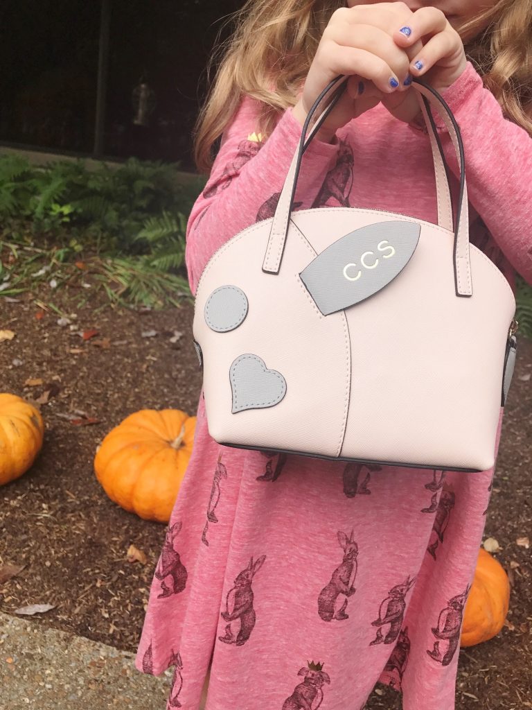 The girls were SO excited to tackle some shopping when I told them they could each pick out a new purse for fall… Caroline quickly opted for the Pale Pink Rabbit Bag [to fill with hand sanitizer and jewelry] and Carson chose the Mini Apple Bag to store her trinkets and treasures [AKA Shopkins and makeup]. I love how their new totes totally fit their unique little style and personalities and they absolutely love taking them out on our adventures.