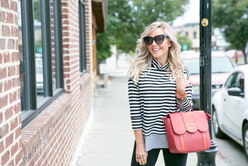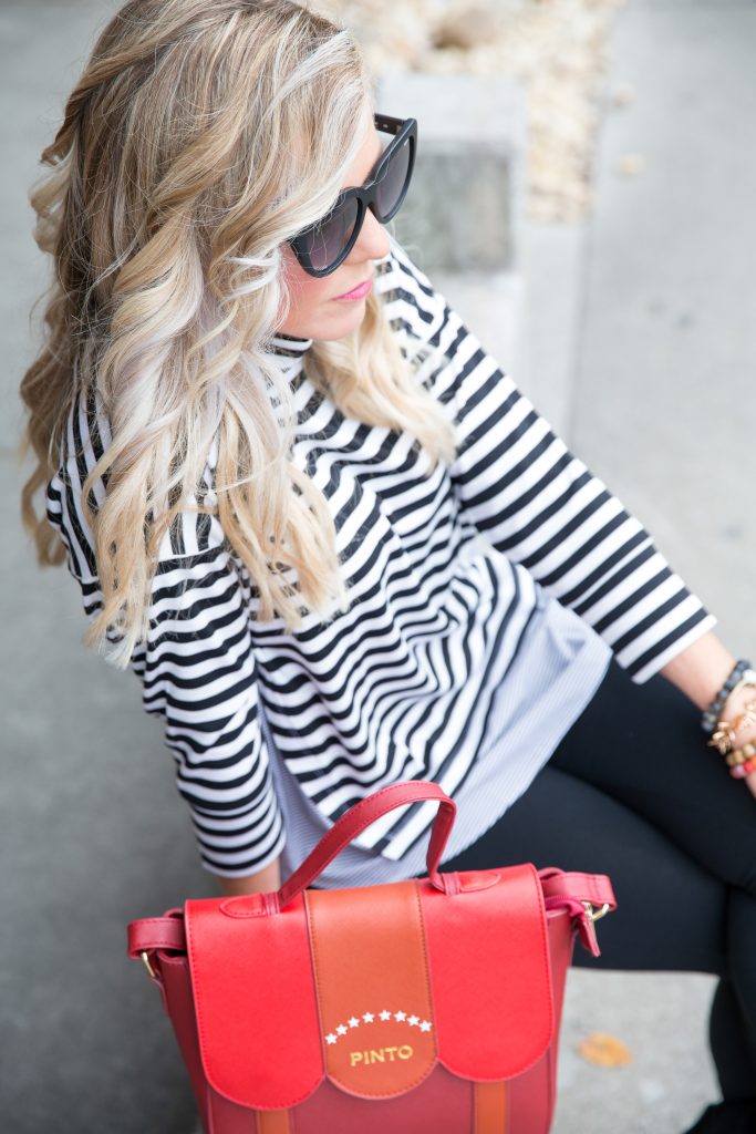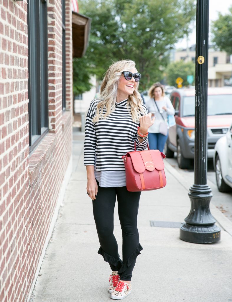 They’re comfortable enough for daily wear, but still special to dress up any ensemble under the sun. I paired them with these Ruffled Leggings [sadly these are sold out, but I am linking a similar style here ], and then this amazingly practical and cute Striped Dolman Layered Top that just so happens to be under $50.