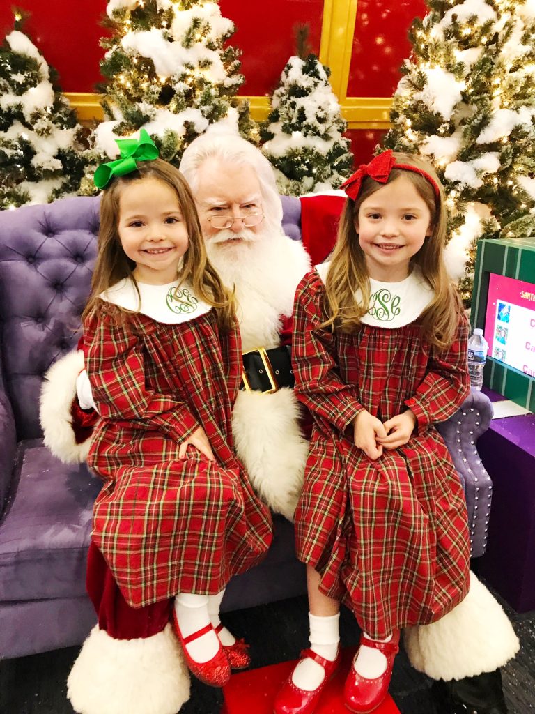 Well of course you can’t have a holiday traditions roundup without talking about your visit to see Jolly Old St. Nick! We get the girls dressed up in their Christmas dresses, take them to the mall, and then we always cap off the day with a special treat, usually ice cream or cookies at a nearby restaurant. Mimi and I started making it a girls’ day since Caroline’s first Christmas back in 2o12 and it’s something we so look forward to each year. It’s crazy to see how far we’ve come with their willingness to share their wishlist with Santa and the crying pics have stopped, which made me sad!!