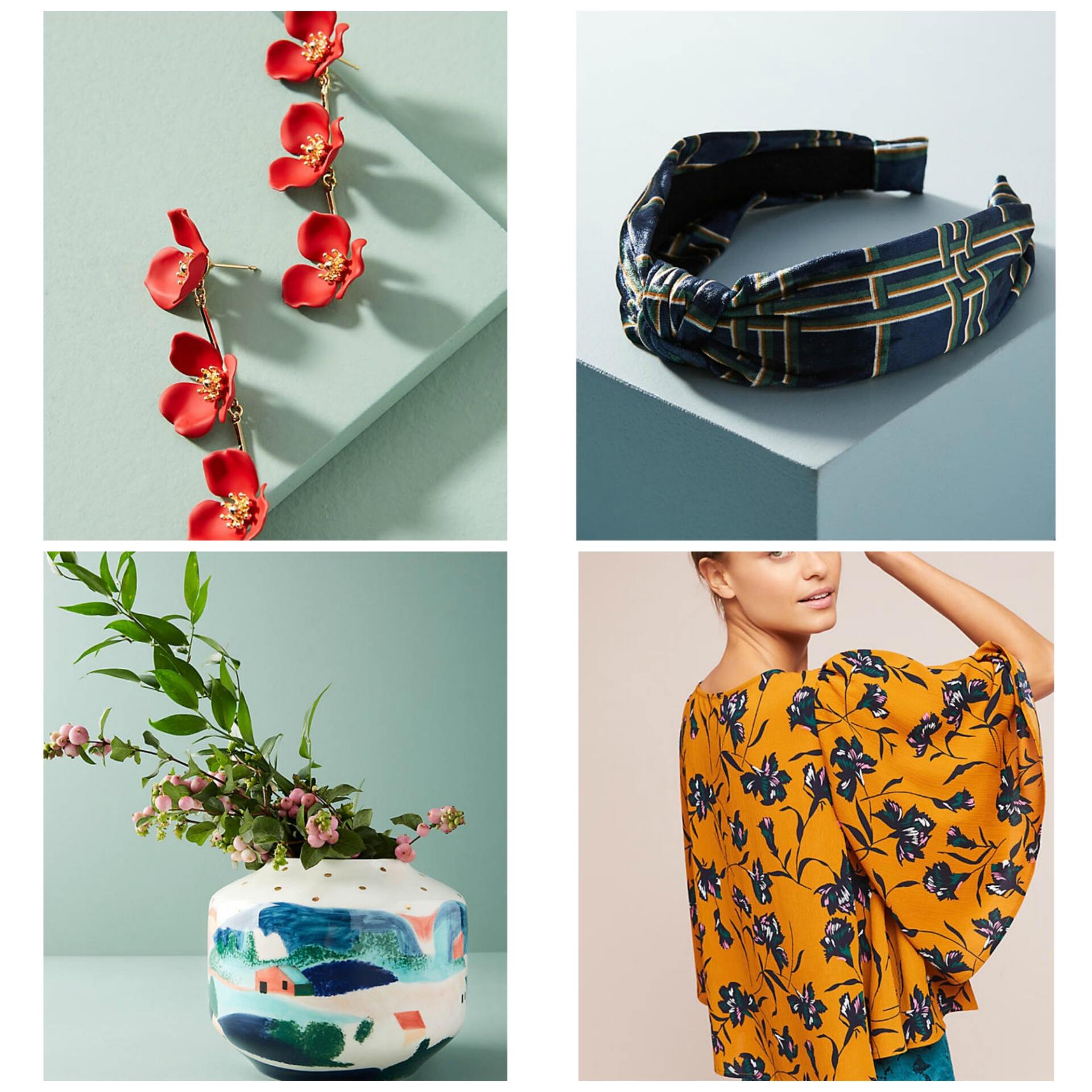Kyra Drop Earrings | Velvet Plaid Headband | Wonderland Vase | Tia Printed Blouse