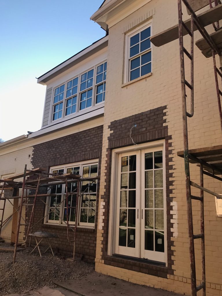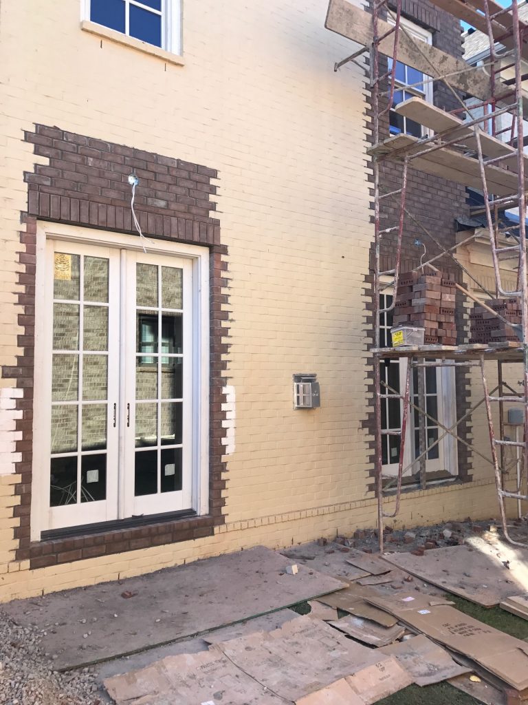 the exterior brick has been completed as of this week… french doors from the family room to the new outdoor kitchen and living space are in and i am in LOVE [doors and windows are from Sierra Pacific]