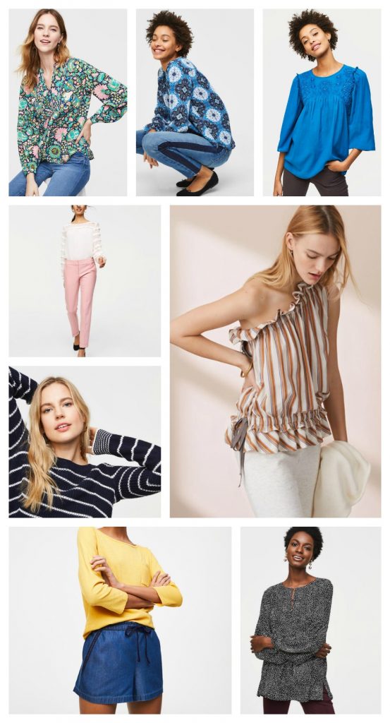 Floral Bib Blouse [already have this and it runs small so size up] | Ombre Stripe Jeans [run TTS] | Embellished Yoke Top | Slim Cuff Pants | Mixed Stripe Top | Ruffle Shoulder Top [LOVE this for spring!] | Stripe Rib Sweater | Cut Out Chambray Shorts | Dotted Henley Top