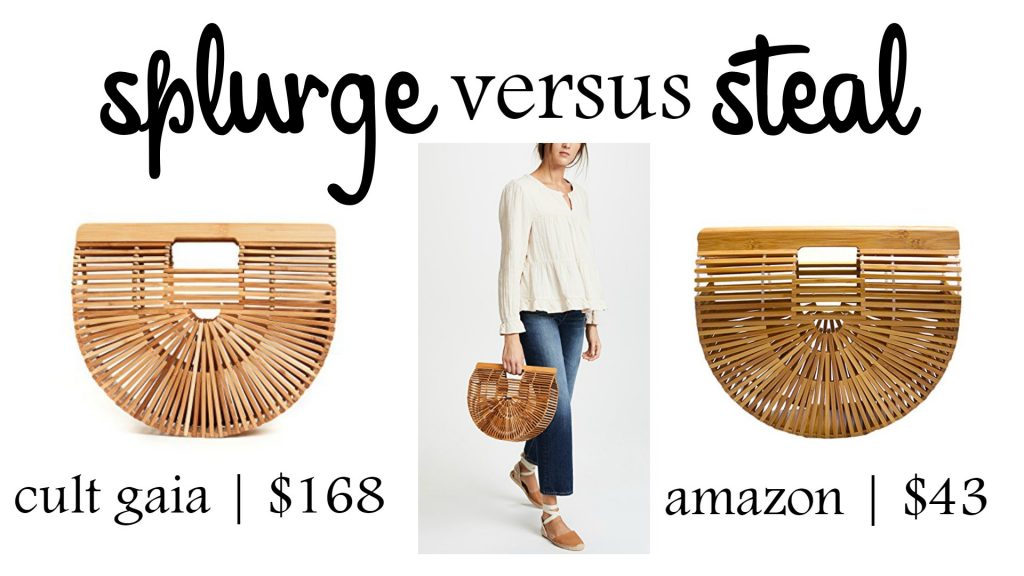 Remember that bag that every blogger [including myself] had last year? You know, the crazy bamboo Cult Gaia Bag that everyone went crazy over… yeah, well look what I found via Amazon!!! If you were on the fence since it’s such a trendy accessory, maybe the steal version will change your mind on this beauty: