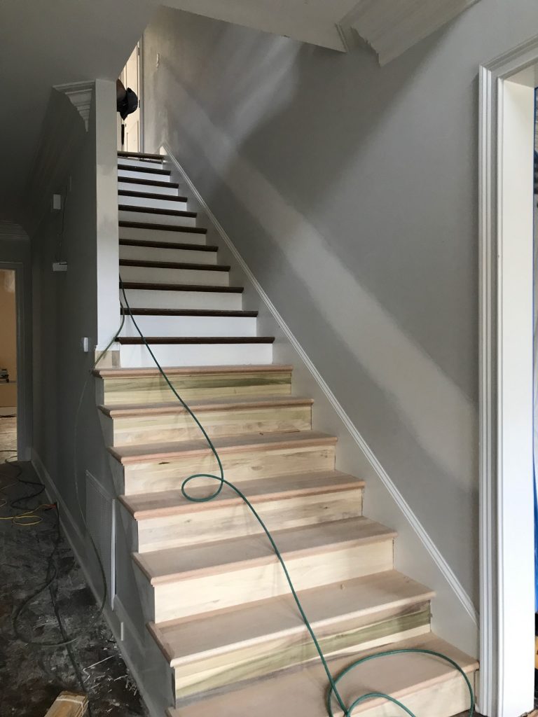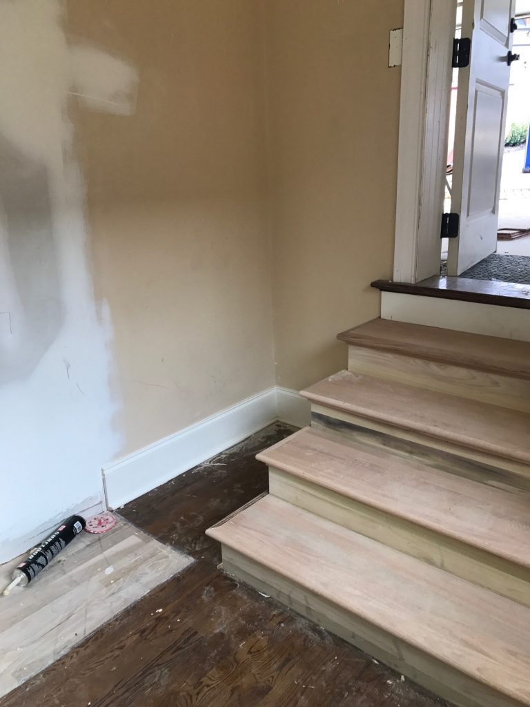 We also added new hardwoods on the foyer stairs as we are going to be inserting a new iron banister so the previous ones had to be redone. We haven’t selected the exact stain color yet, but will keep you updated on that detail, too.