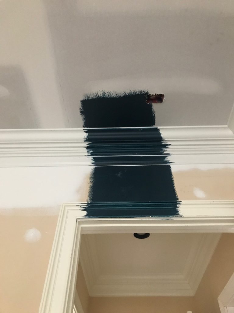 We have also moved on to interior paint sampling and the first coats have gone up!! The majority of the house will be painted white, BUT a few select rooms we have decided to go bold [because that’s how we roll–haha]… which will include the downstairs guest bedroom, upstairs guest bedroom AND our master bedroom, which is even giving me all the heart eyes = navy walls + navy trim!! More progress pictures of that to come in March I promise, but I have to keep you guessing a little bit.