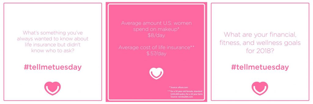 They also have a #TellMeTuesday conversation on their Facebook page where you can ask questions and learn more about life insurance… simple and oh so helpful and this is when modern technology makes me happy = instant access and guidance. We are all about positive changes and impacts to our well-being, health and life since it’s a brand new year, and this is one topic that should top your list… small changes add up to big results. Like the graphic above which shows how on average women spend $8/day on makeup, and the average cost of life insurance is just .57/day. It’s all about perspective, right?!?! I’ll be honest=that number hit home for me as I don’t think twice about the lipstick I buy, but it just demonstrates how inexpensive it really can be and I can forego a few things to help my family in the long run.
