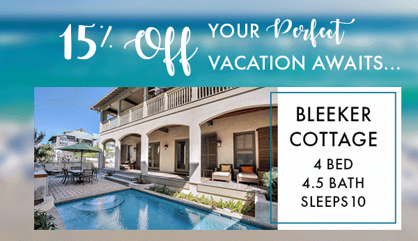 Speaking of vacation, we are at the two week mark until we are bound for Rosemary Beach!! I am going crazy with anticipation and excitement over heading south to our favorite beach town AND for all of you asking about what houses we stay at when we go, here is a little info, as they are offering a special discount right now for SUMMER VACATIONS. Book now and save 15% off your trip when you use code JULY [offer through 3/15]… and sharing a few of our favorite rental houses, too: