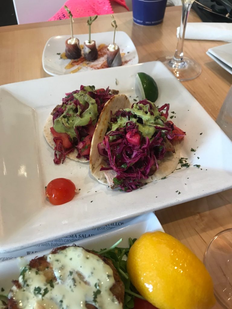 Before the rain showers came in that night, we walked to Summer Kitchen Café for dinner while they played a family-friendly movie on the lawn outside. We had the best Pan Seared Grouper and Shrimp and Grits and their OUT OF THIS WORLD desserts—definitely a highlight for this gal who has a major sweet tooth.