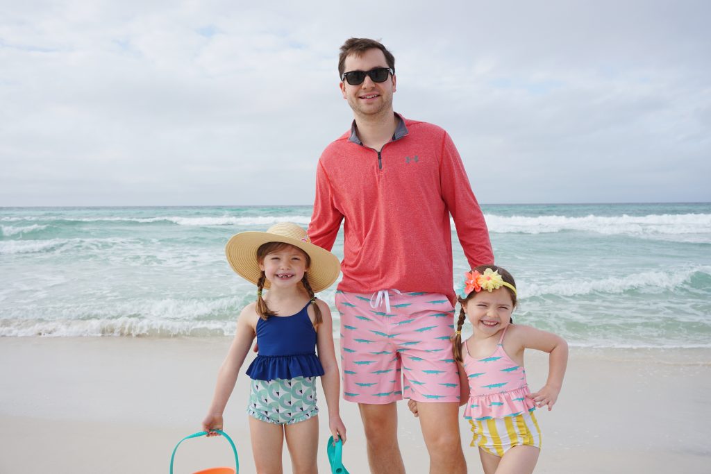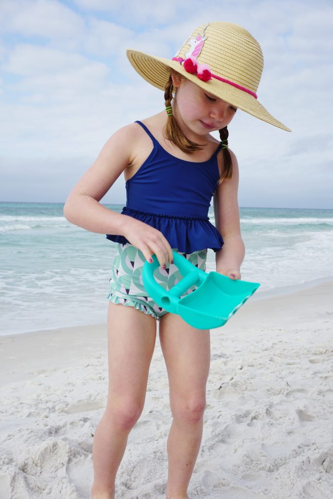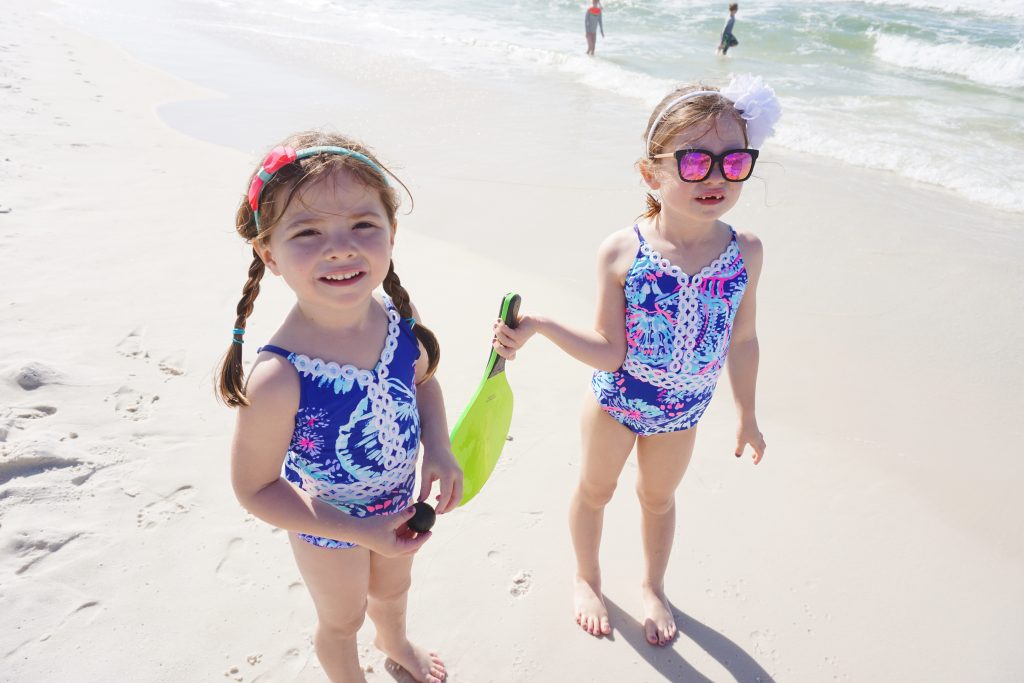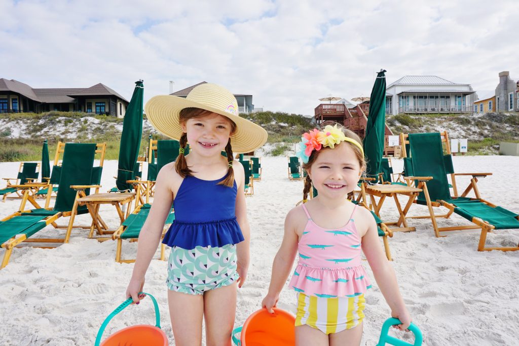 The next morning, we headed down to the beach super early so we could be the first ones out and dominate the sand castle game and start our typical seashell search. We rented beach-side chair service just like we always do, which proves to be SUPER convenient and a necessity for us! It was a picture-perfect morning with the four of us… hunting for seashells, taking strolls along the water, and of course building castles and moats and keeping busy with the littles.