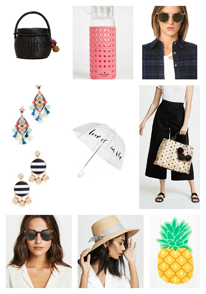 Honey Pot Bag | Coral Glass Water Bottle | Kandy Gram SUngluasses | Geo Stone Statement Earrings | Love is in the Air Umbrella | Set Sail Drop Earrings | Dottie Straw Tote | Super Duper Sunglasses | Pineapple Beach Towel | Lampshade Hat |
