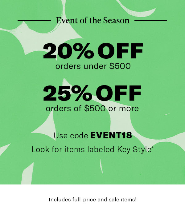 What: 20% Off Orders Under $500, 25% Off Orders of $500 or More