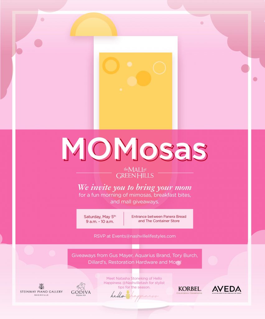 AND for all of you local Nashville ladies, if you’re looking for a fun morning out activity to get you and your mom out and about, come visit Brian from Nashville Lifestyles and I as we host MOMosas at the Mall at Green Hills. Join us for spring and summer trends, Mother’s Day gift ideas, and host a TON of incredible giveaways any lady will love [including David Yurman, Macy’s, and a host of other mall merchants]. And of course, we’ll have all the necessities–including mimosas for sipping and loads of snacks, too!