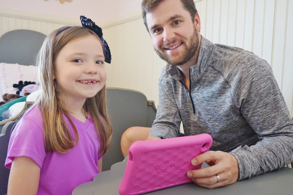 Now, Caroline and Carson have technology at their fingertips at school AND at home and I for one think it’s AMAZING that they have the ability to create and inspire with something that’s easy to take with them wherever they go. Say hello to the Amazon Fire Kids Edition tablet… a great little gadget that has truly helped bring our family together for quality playtime + fun with technology at our fingertips.