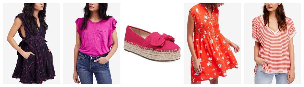 Cactus Flowers Dress [on sale for $64] | So Easy Flutter Tee [under $30] | Espadrille Bow Flats [hello $33 for the win] |Â Smocked Sundress [just $49] | Take Me Out Contrast Tee [only $34]