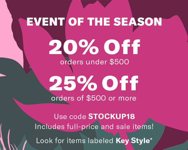 **Make sure you shop “KEY STYLES” as those are the products on sale… AND be sure to use code STOCKUP18 at checkout to save 20 to 25% off your total purchase**