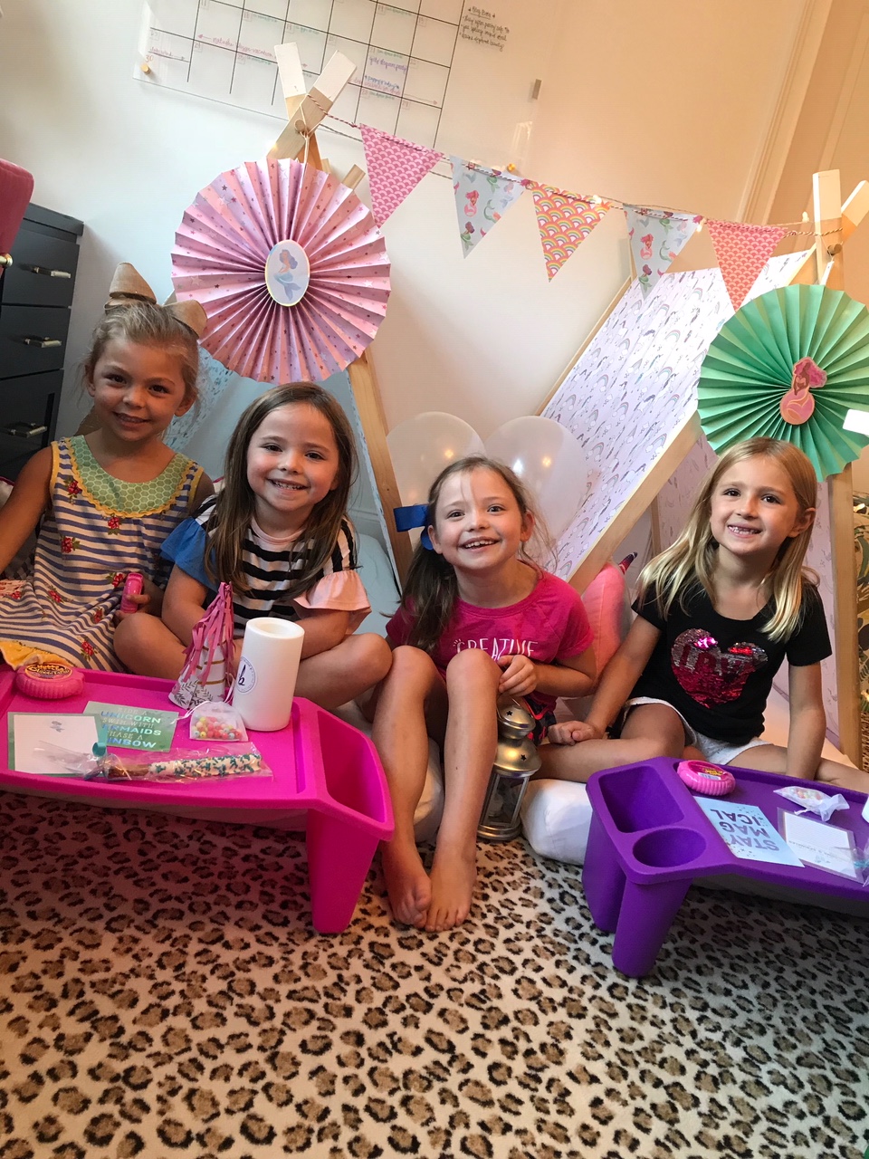I totally gave in… the girls hosted their very first sleepover a few weeks ago, and I can’t take any credit for the magic and wonderment that still has them talking. Jessi from Let it B Love reached out to me about one of their super sleepover parties and I instantly said YES when I saw just how cute their business is. It just so happened that Jeff was going on a long boys weekend away at the lake house so I knew it would be perfect timing for all girls’ fun.