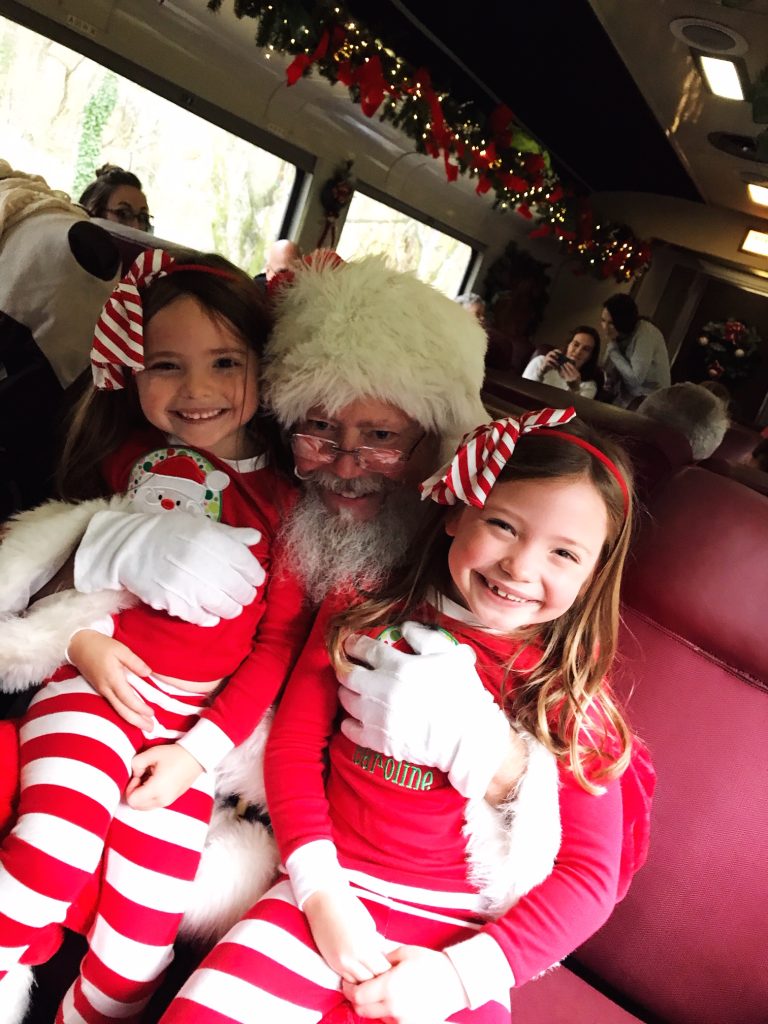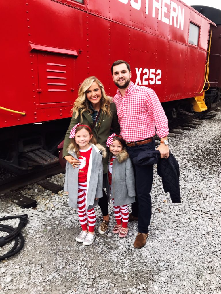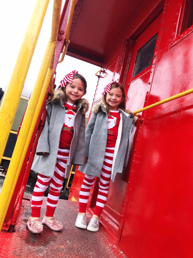 This past weekend, we headed east to Chattanooga for some MUCH needed Christmas cheer. Mimi and I booked tickets to the Tennessee Valley Railroad North Pole Limited Train months ago and of course I’ve been counting down the days until this little overnight trip for weeks—the best part was that we kept it a secret and surprised Caroline and Carson the night before. Hands down, it made for the perfect little excursion and the girls were SUPER excited of course, complete with new personalized Santa pajamas for their big train ride!