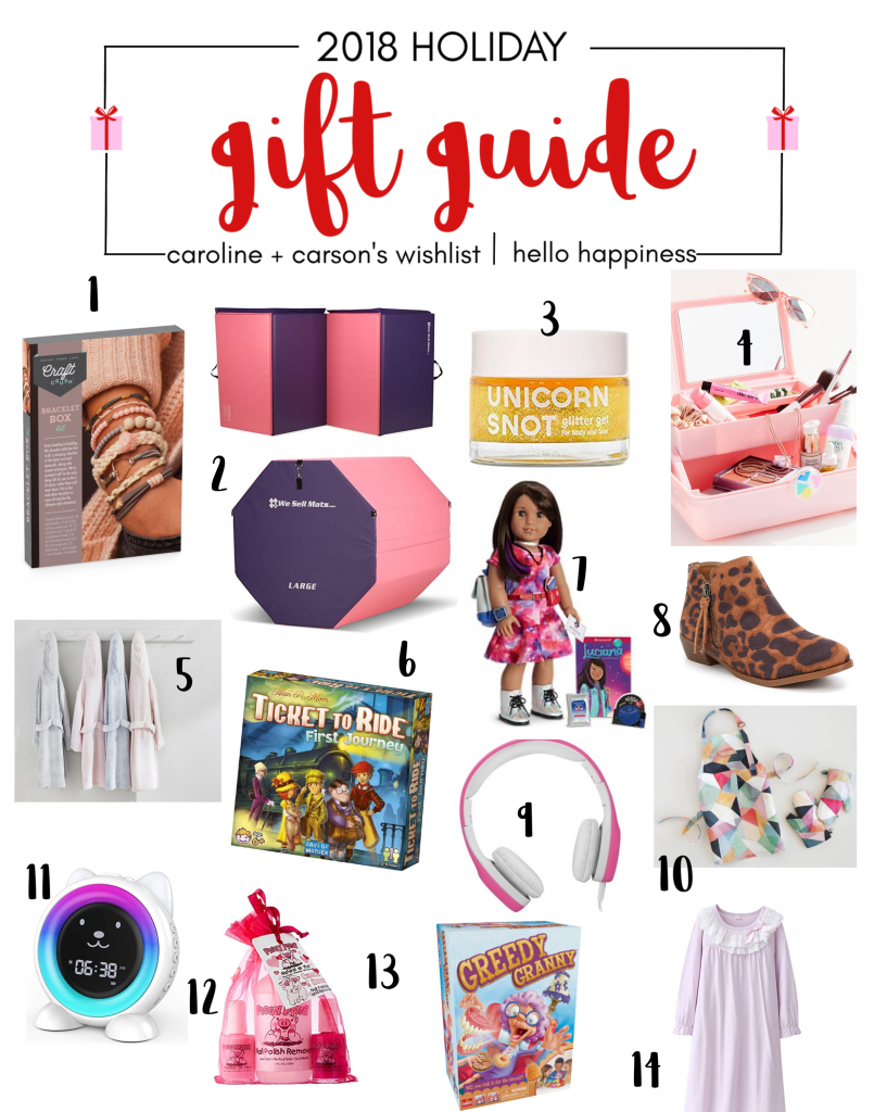1 Craft-Tastic Kits [LOVE these for girls for kids 6+] | 2 Gymnastics Folding Mat and Octagon Wedge [just make sure you have a place to store these–haha] | 3 Unicorn Snot Body Glitter [yes, it comes in tons of colors and the perfect stocking stuffer] | 4 Caboodles On the Go Makeup Case [for my makeup obsessed nugget Carson] | 5 Classic Robes [my girls need new ones and these can be personalized!] | 6 Ticket to Ride Board Game [we are a game family in this house and these games will be a huge hit for winter days] | 7 American Girl Luciana Dolls [oh yes, another AG holiday–woo hoo!!] | 8 Leopard Booties | 9 Lil Gadgets Headphones [we need new ones for all those movies and games on the iPads] | 10 Personalized Apron and Mitt Set | 11 Rise and Shine Alarm Clocks | 12 Piggy Paint Nail Polish Kits | 13 Greedy Granny Game | 14 Pastel Nightgowns [under $15, t00]