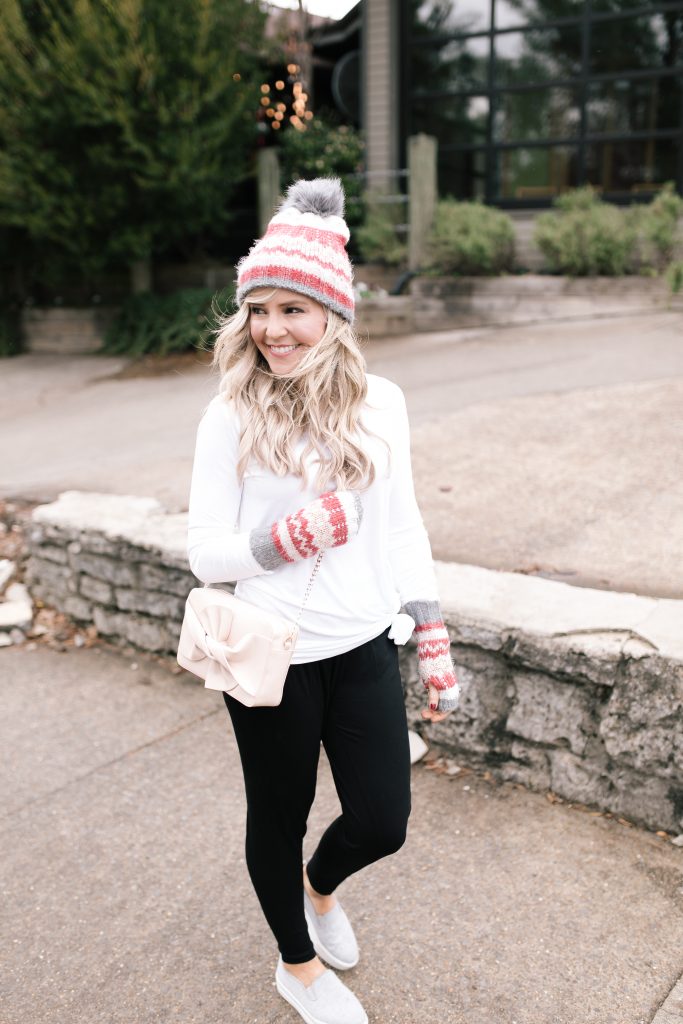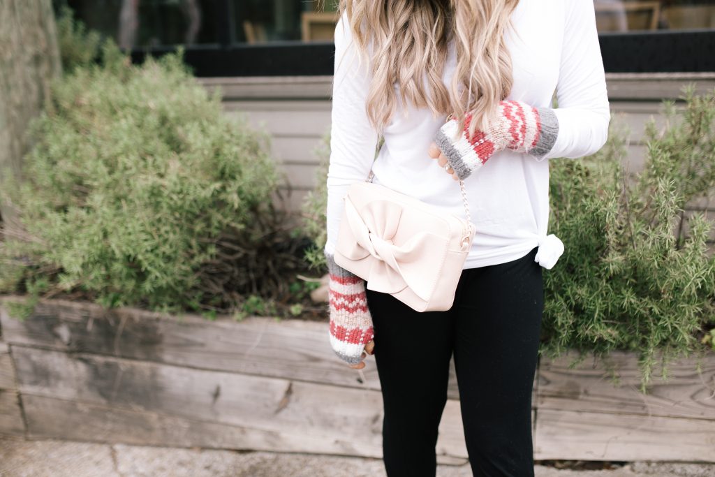 Another winter wonderland type of OOTD I grabbed includes these Quick Dry New Yoga Bottoms [Product #T51/3614] — a total steal for only $25 AND they are the softest pants ever. I added a simple $11 Pure Cotton White Shirt [Product #T41/8109] and their Fairisle Hat and Glove Set from their Winter Accessories collection and this Blush Bow Crossbody Bag [Product T01/1110Q] and called it complete… a casual, yet totally cute winter OOTD that doesn’t break the bank = score!