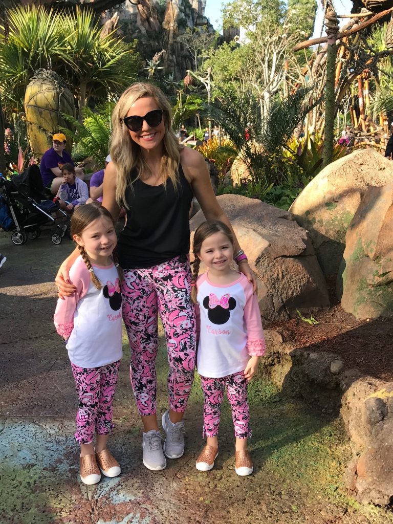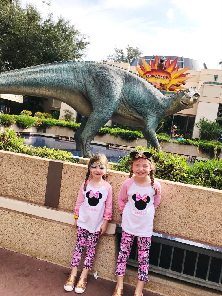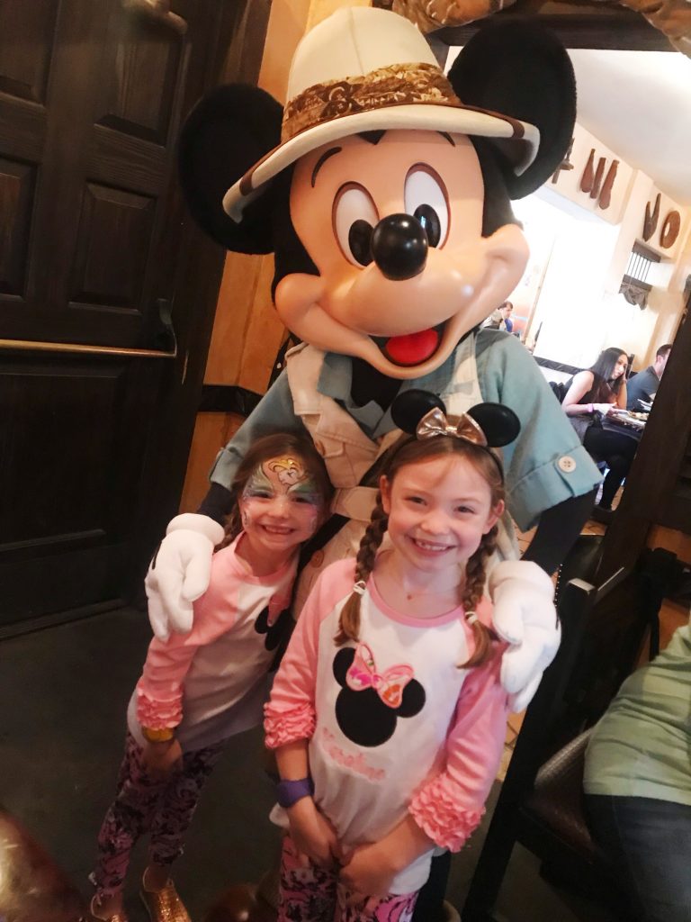Friday at Animal Kingdom was the perfect mid-vacation destination… the sun was out, the weather was GORGEOUS [mid 70s hallelujah!] and our crew was ready to head back to Animal Kingdom. We wanted to get to AK right when it opened to see what rides/attractions we could get knocked out before our first FastPasses, but apparently everyone else had that same idea so we stuck to It’s Tough to Be a Bug 3D Show, then hit up Navi River Journey in the new Pandora World [absolutely incredible and a must-see], DINOSAUR [we LOVED this one!!], and then had another character meal for lunch at Tusker House. This was another fav for all of us, as the food and atmosphere were great and the girls got to add Mickey Mouse, Donald Duck, Daisy Duck, Goofy and Pluto to their autograph pillows… afterwards, we headed to the afternoon showing of Festival of the Lion King, which is another amazing show that we always enjoy!