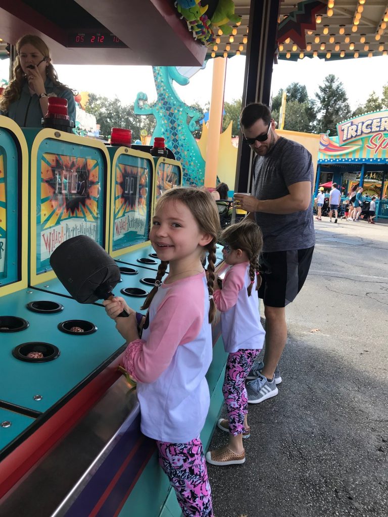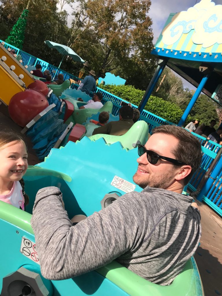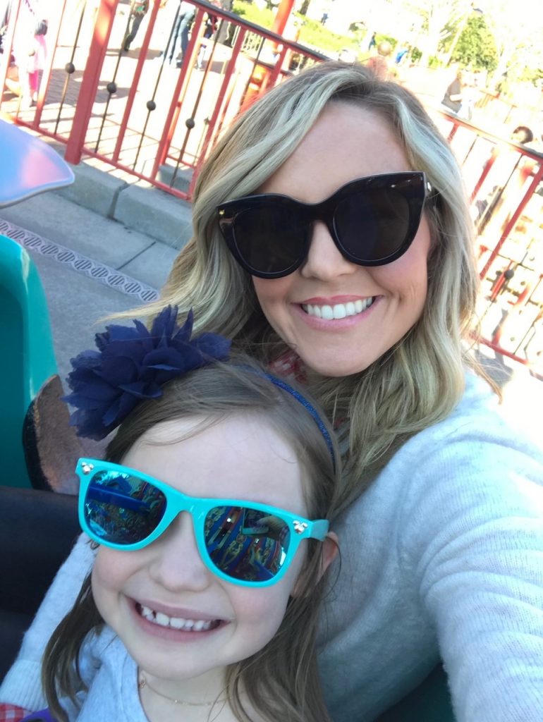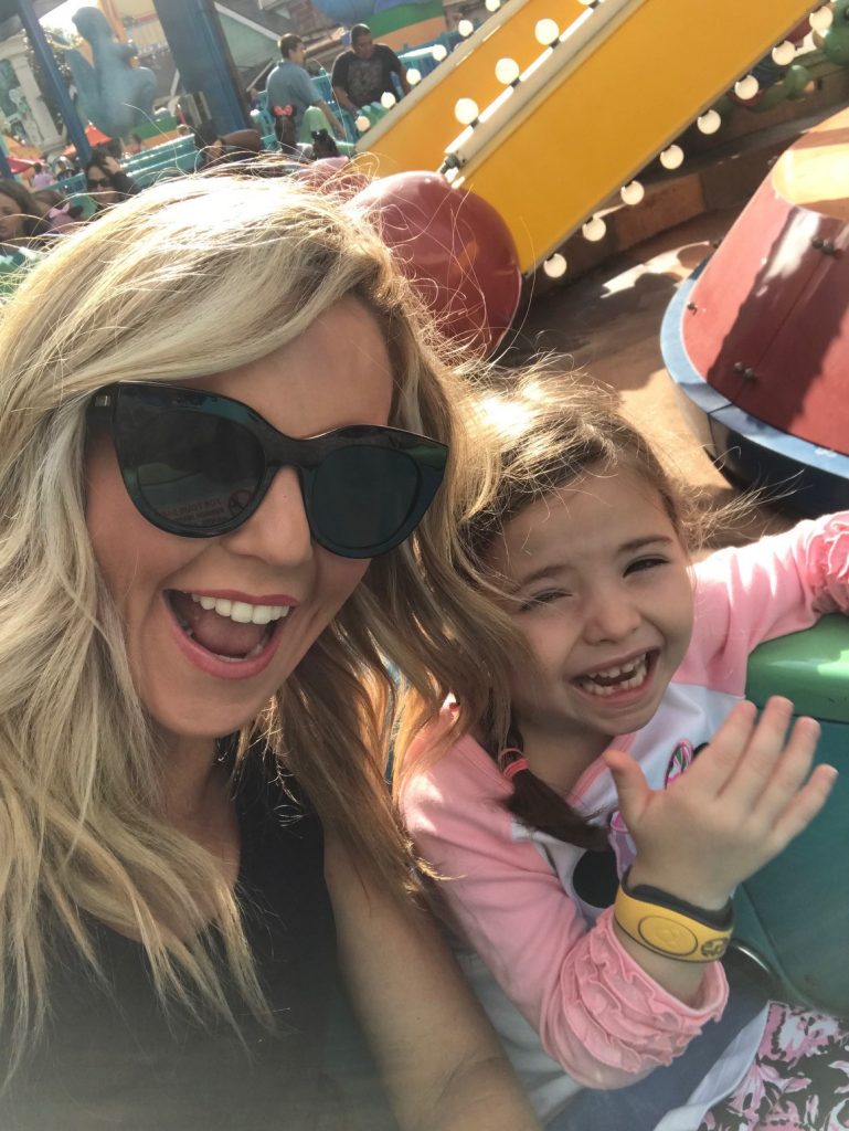 After that, we did some safari exploring in the Jungle Cruise ride, hopped onto Aladdin’s Magic Carpets, and then Jeff and the girls got crazy and rode the Mad Hatter Tea Party AKA the spinning tea cups that almost made me sick last time we did them. Once we had completed our initial three FastPasses, we hopped onto the app and were able to get another ride in at Dumbo, the Barnstormer, and then we headed to Main Street for plenty of souvenir shopping, sweet treats and goodies before leaving the park!
