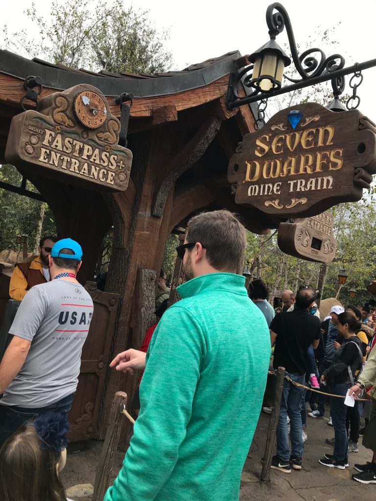 After that, we were able to tackle a few more typically packed rides before the crowds got there, so we did the Haunted Mansion and the Prince Charming’s Regal Carousel before heading to our first FastPass of the day, Seven Dwarfs Mine Train. When you see that wait time of 180 minutes, you’ll be SUPER thankful you get to skip that line my friends… I promise! Then we walked to the back of the park for Journey of the Little Mermaid, followed by lunch at our favorite quick-service, Be Our Guest [P.S. yes they have mimosas and beer] and the food is great for a fast meal!