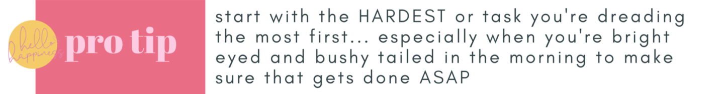 Again, I’m not saying anything super innovative with a few of these reminders, BUT it’s easy to forget to keep it simple + be efficient. A daily to-do list can do wonders, especially for you type-A friends that LOVE to check off and mark through your actionable items… why does that feel so good?? I just bought this daily planner notepad [just $8 for 100 sheets] and I love that is has an hourly breakdown so I know exactly what I need to do each day and at what time.