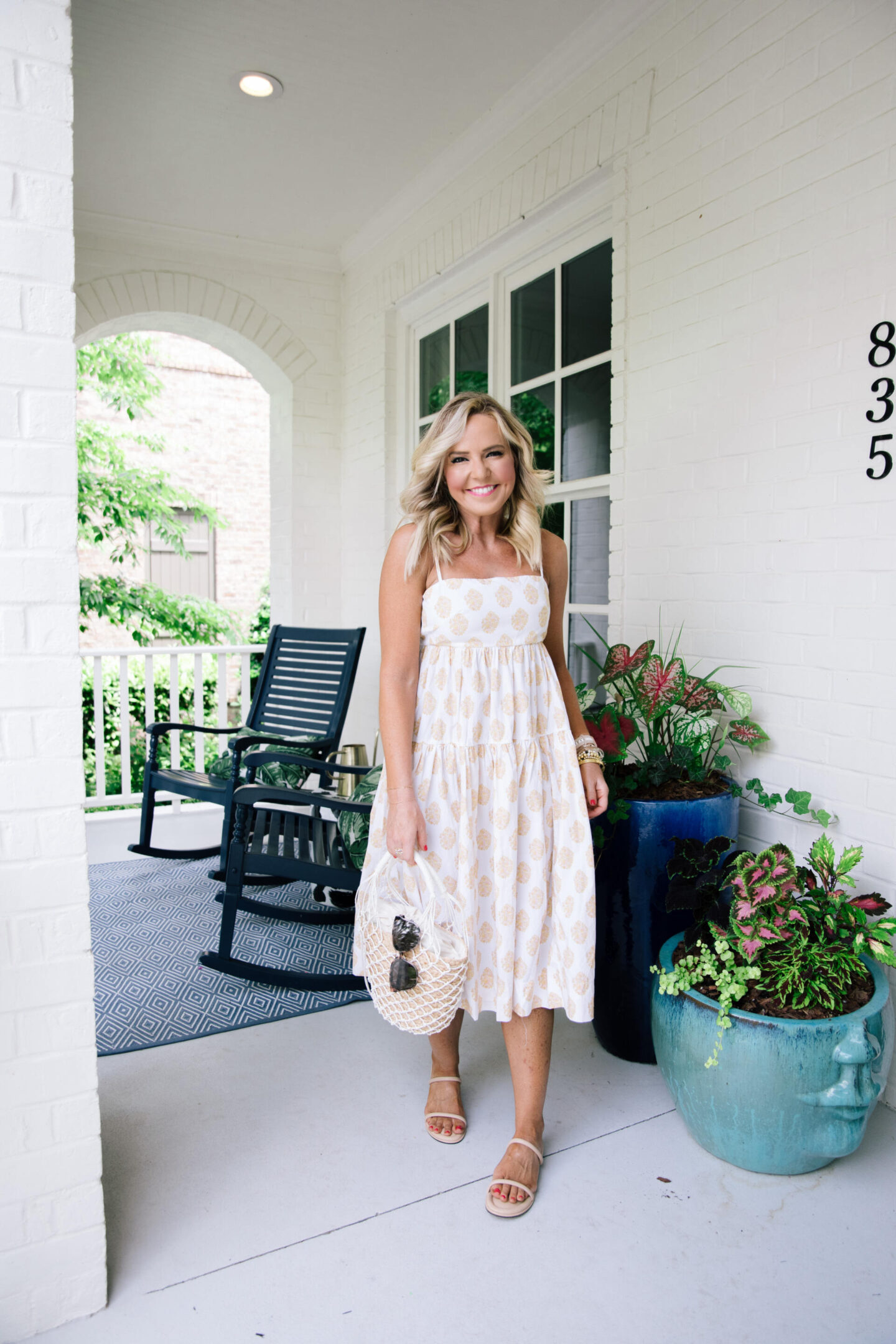 tie back tiered dress | [wearing XS] this fun print midi dress is perfect for any occasion this summer, it has a tie back detail and a tiered skirt that adds a fun flair. it’s simple cotton fabrication makes it a warm weather standout for summer!