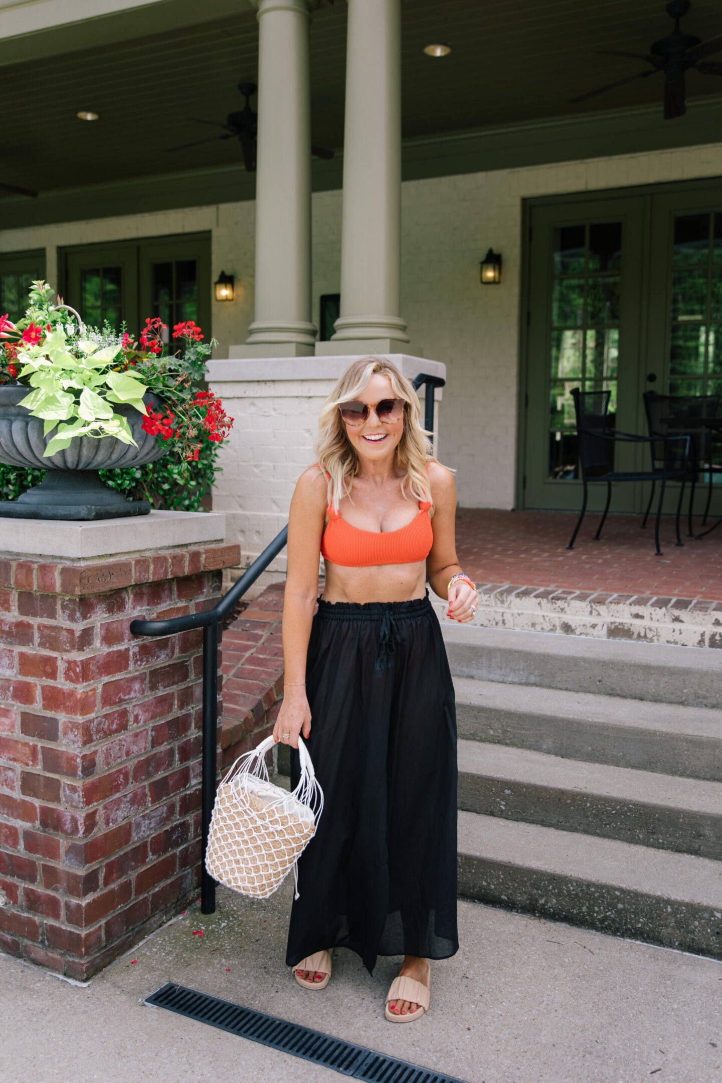 sedona basket bag | a little bucket bag beauty you need for your next beach trip! it’s a woven raffia overlayed with netting finished with a canvas lining on the interior