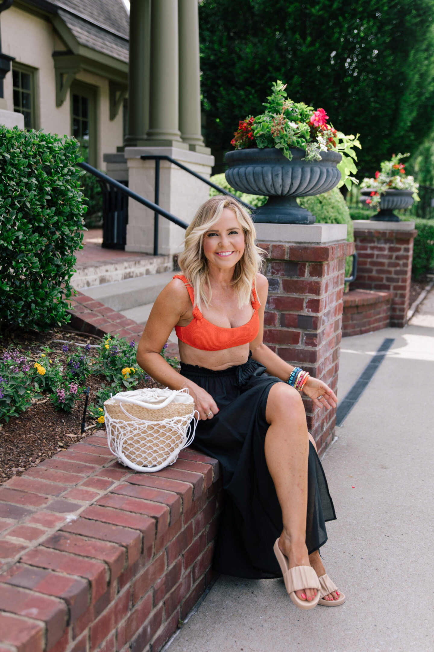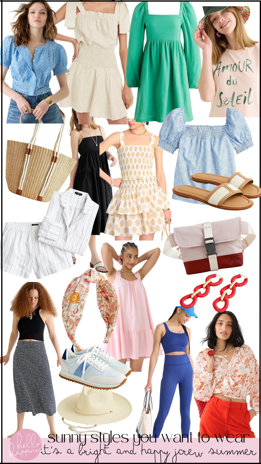 hydrangea eyelet top |flax linen skirt |square neck gauze dress | amour du soleil graphic tee |woven market tote |tiered cotton dress |smocked mini print skirt | liberty blossom blouse | canvas slides | linen cotton pj set montauk belt bag | broken in knit dress |raffia earrings |dot print slip skirt |colorblock trainers | knot headband | wide brim hat | high rise ribbed leggings | vivid flame chino short