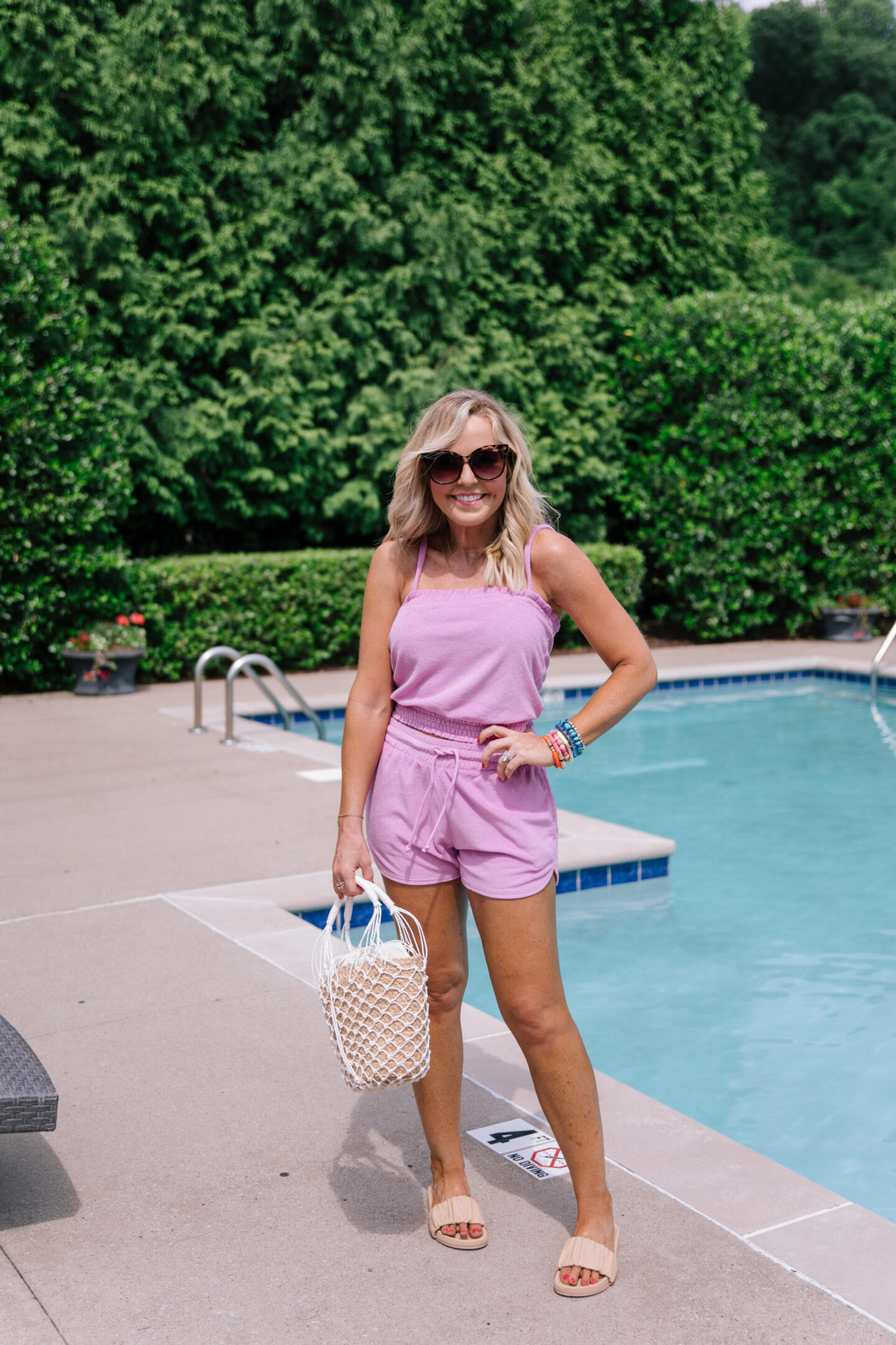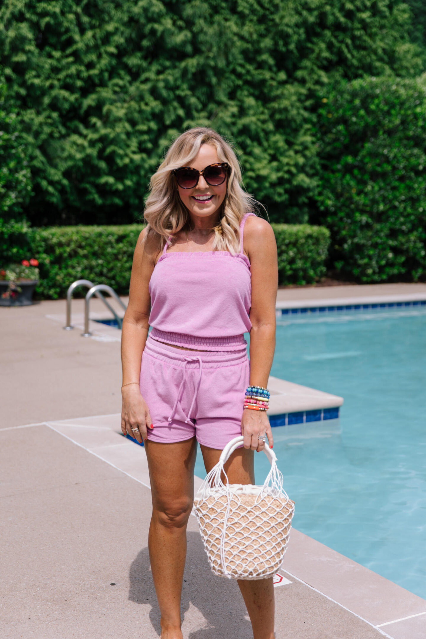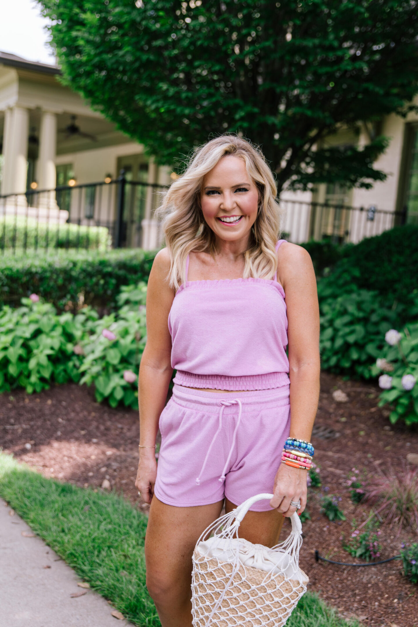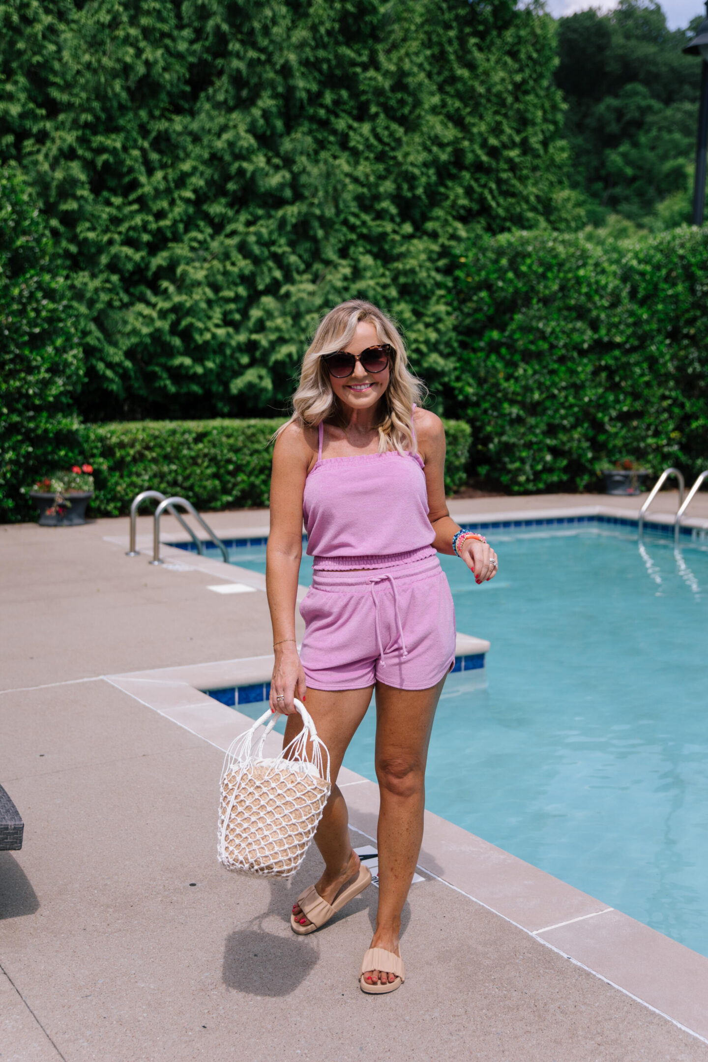 smocked terry tank + towel shorts | [wearing XS in top/TBD in shorts/color petunia] if you’re totally on board with the terry trend like I am, you’ll want to add these to cart. you can mix and match or wear these as separates too!