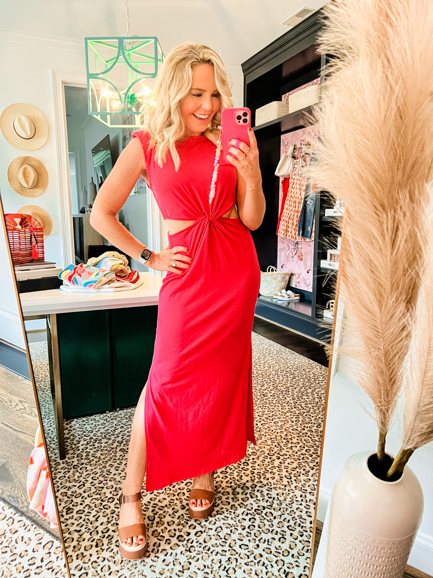 Cut-Out Maxi Dress [wearing small/runs TTS/only $26] I took a gamble on this one and I am SO glad I did because it is absolutely stunning on. Such a fun and unique take on a traditional straight-line maxi silhouette and I LOVE how many color combinations this pretty comes in. Dress it down with flat sandals or up with heels and you’ll be ready to take on the town! I love the subtle shoulder pad insert and twist front detail SO much.