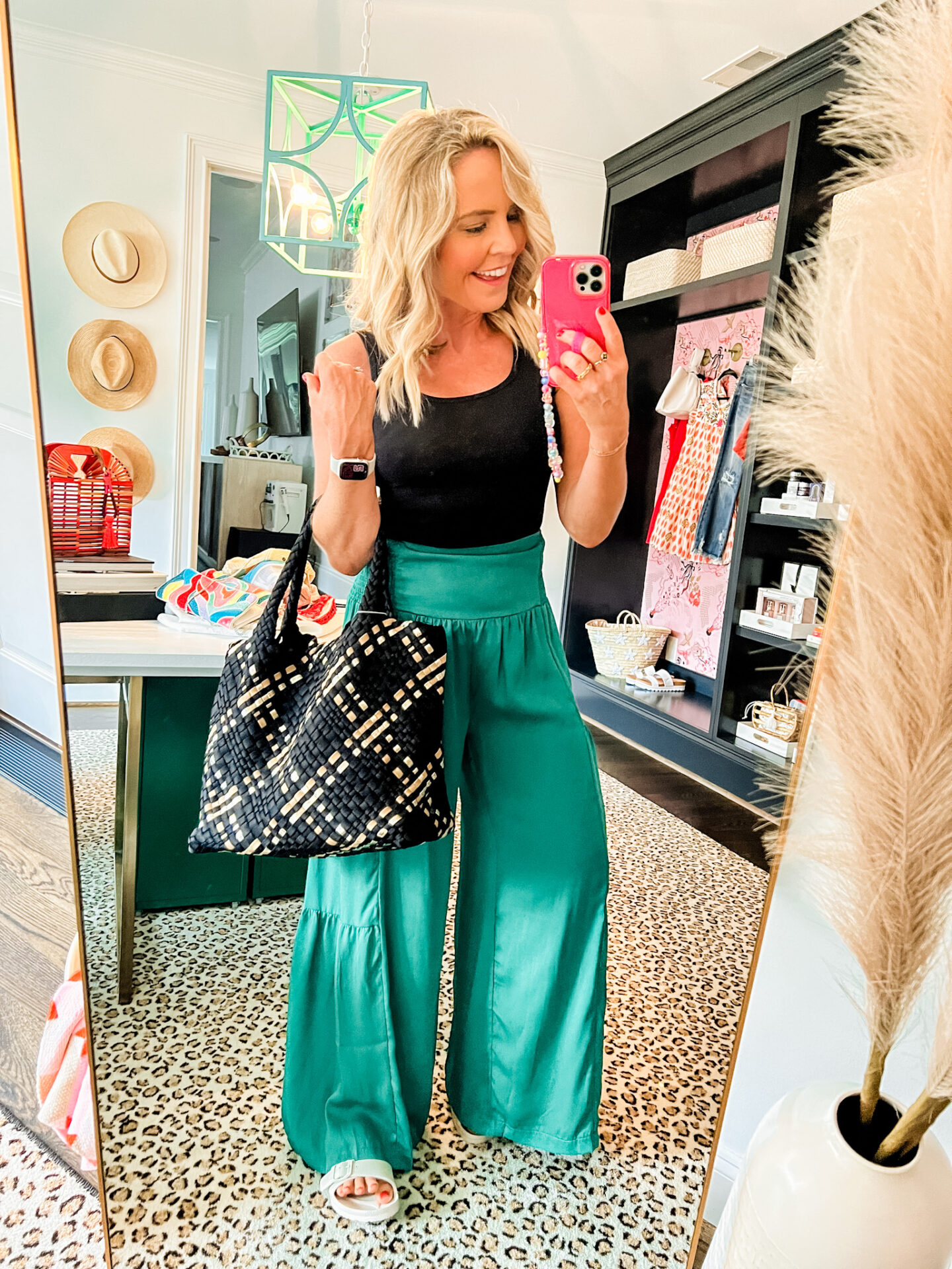 Amazon Essentials Scoop Tank [wearing XS/set of two for $14] + Smocked Wide Leg Pants [wearing small/runs TTS/just $28] if you are looking for a basic tank you will reach for on repeat, look no further!! this scoop tank is the perfect tailored fit, comes in many color options, and is sold as a pack of 2! for the perfect bottoms to pair, snag these smocked wide leg pants that come in countless colors. the smocked waist and flowy legs couldn’t be more comfortable – perfect for a beach/lake trip or lounging at the house.