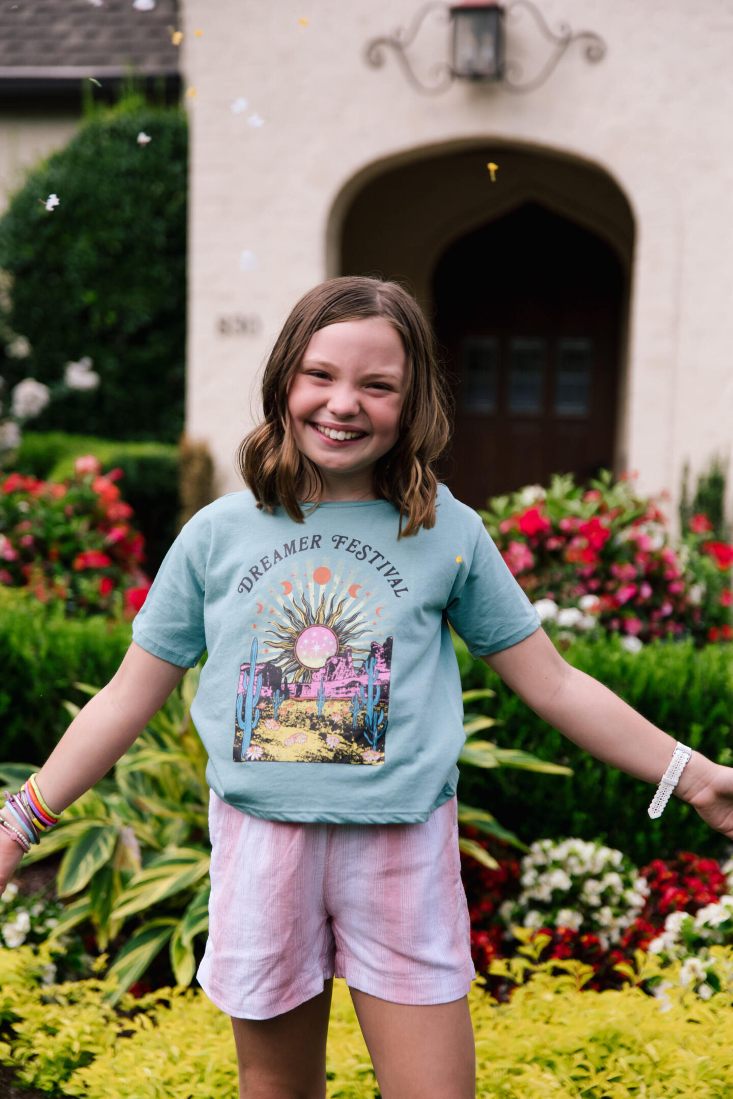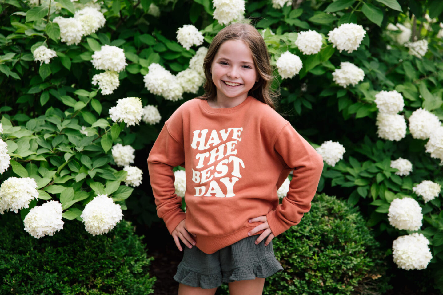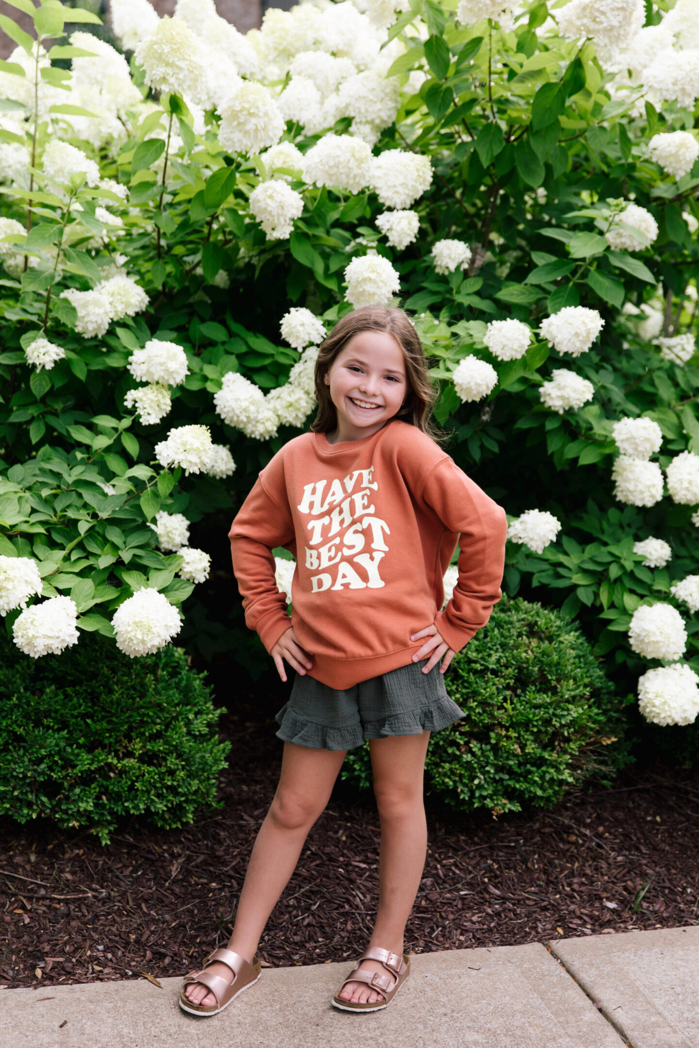 If you’re like me and my girls, you LOVE a good oversized sweatshirt situation and this positive affirmation Have the Best Day Sweatshirt is just perfect for back to school when your classroom is a bit chilly! This essential comes in a variety of styles and colors and it won’t set you back in the budget department because it’s a steal for $13. Paired with the same Gauze Smocked Ruffle Shorts I shared above, it’s a great look in fall hues as well!