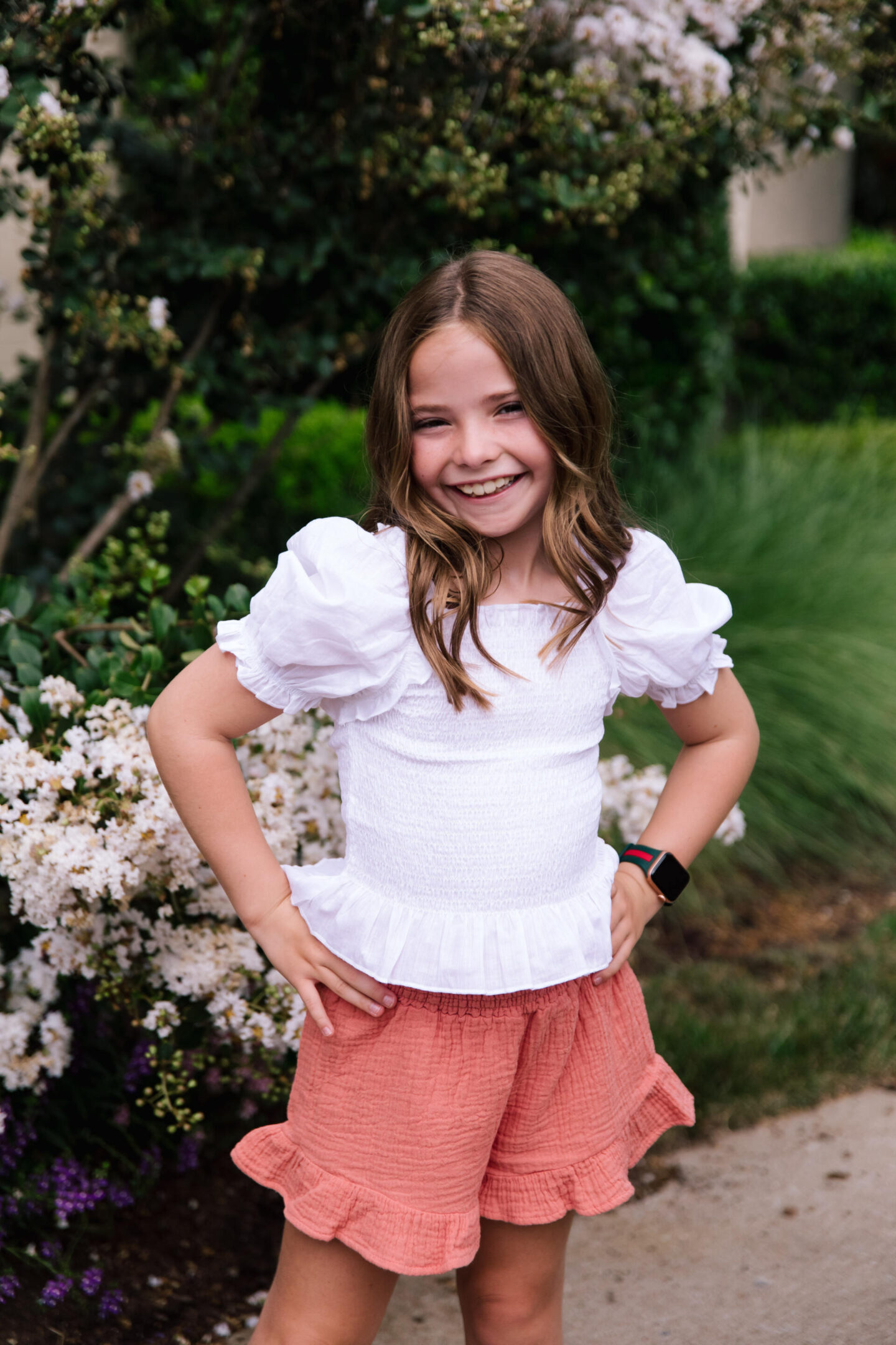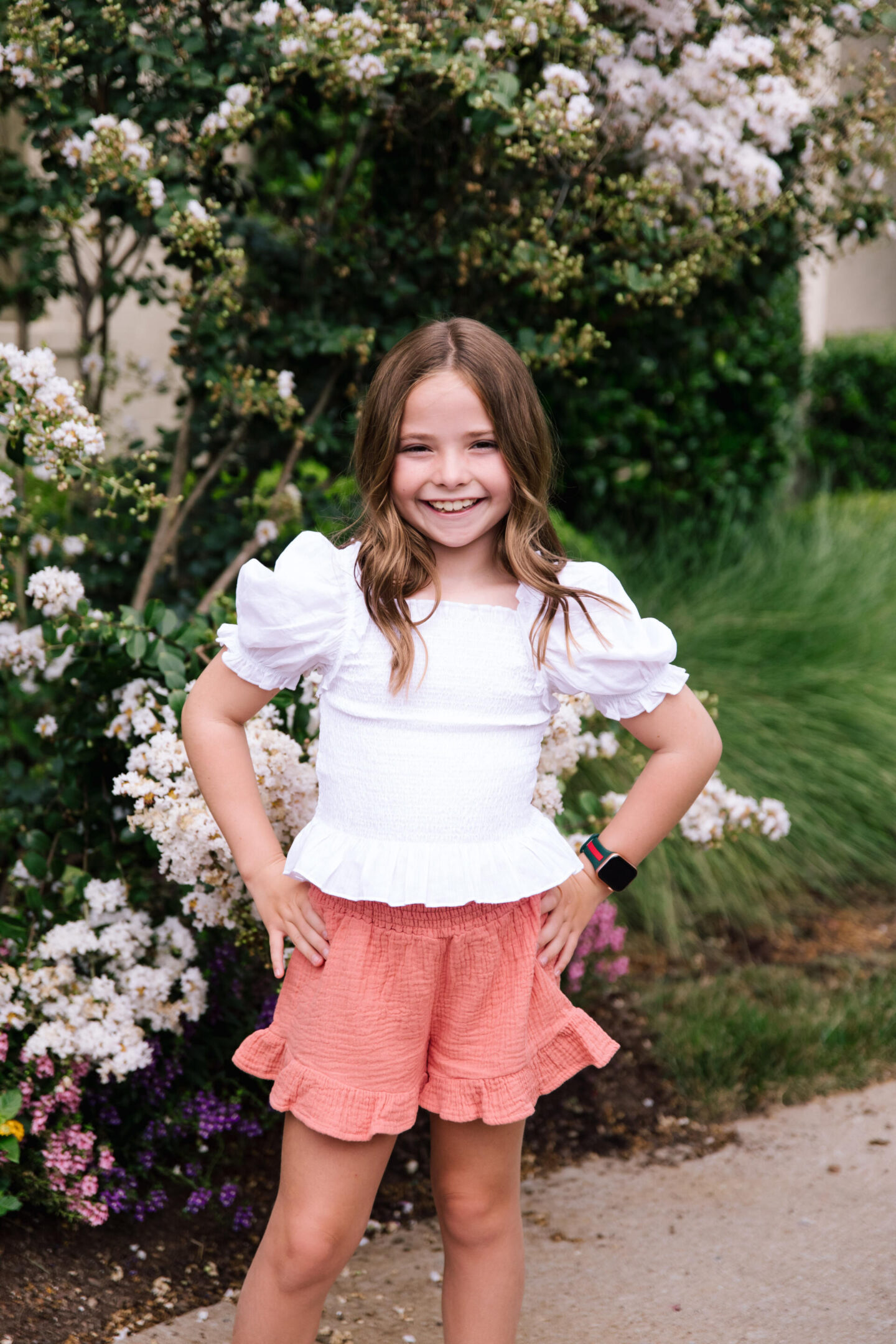 Starting things off is this absolutely adorable Smocked Puff Sleeve Blouse from Wonder Nation. A steal for under $10, it comes in four different color options and is the epitome of elevated everyday style that is anything but basic. Carson is super picky when it comes to her school attire so the fact that she handpicked this cuteness was even better! As for the bottoms, these Ruffled Gauze Shorts come in a pack of two for under $15 so you’re sure to get lots of use out of both colors. The elastic waistband and easy on/off styling makes them ideal for school, but still fashionable and fun as well.