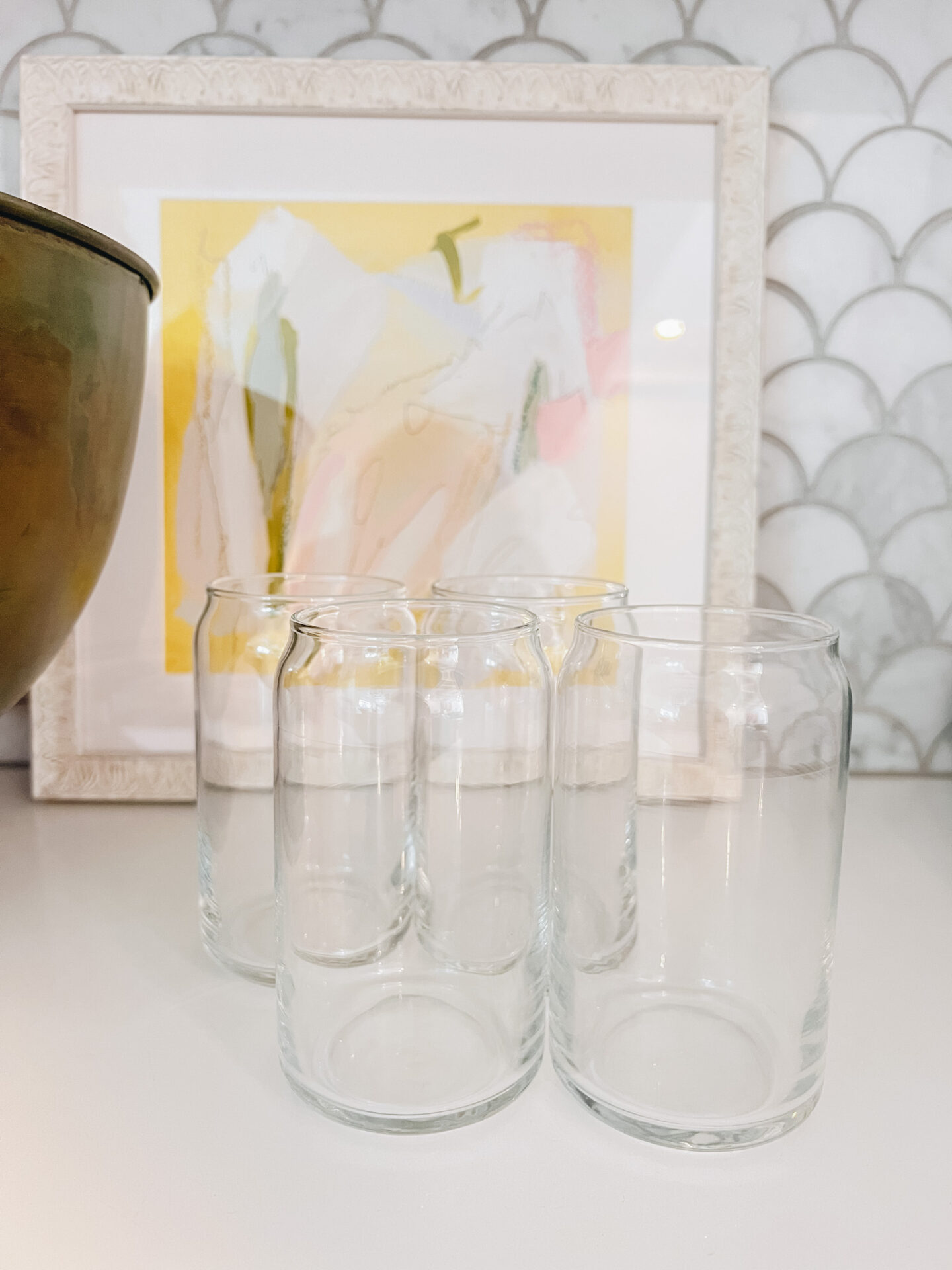Libby Glass Tumbler Set [4 pack for $13] | These classic soda can shape set of tumblers will be perfect for a delicious iced latte or a home-made cocktail, any beverage of your choosing! The glassware is durable enough to last through clinks and accidental spills. They are simplistic and great quality- pair them with glass straws and make a perfect gift!