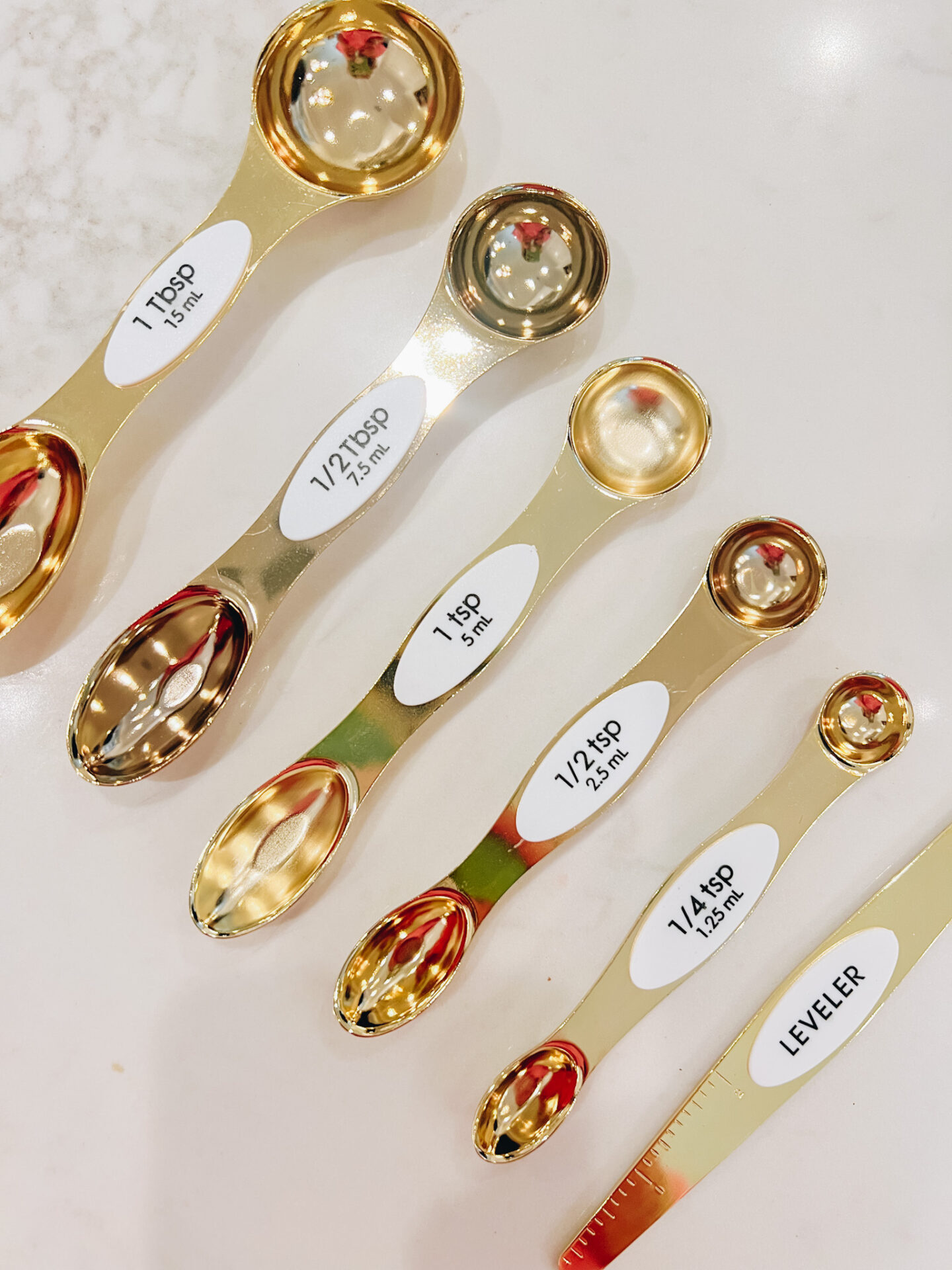 Magnetic Measuring Spoon Set [$15] | I absolutely love this kitchen gadget and the aesthetic truly does measure up 😉 Again, the stainless steel in gold gives your kitchen that classy vibe, but this is such a useful product when you are trying to save some space in your storage and bring joy and a touch of glam to your kitchen!