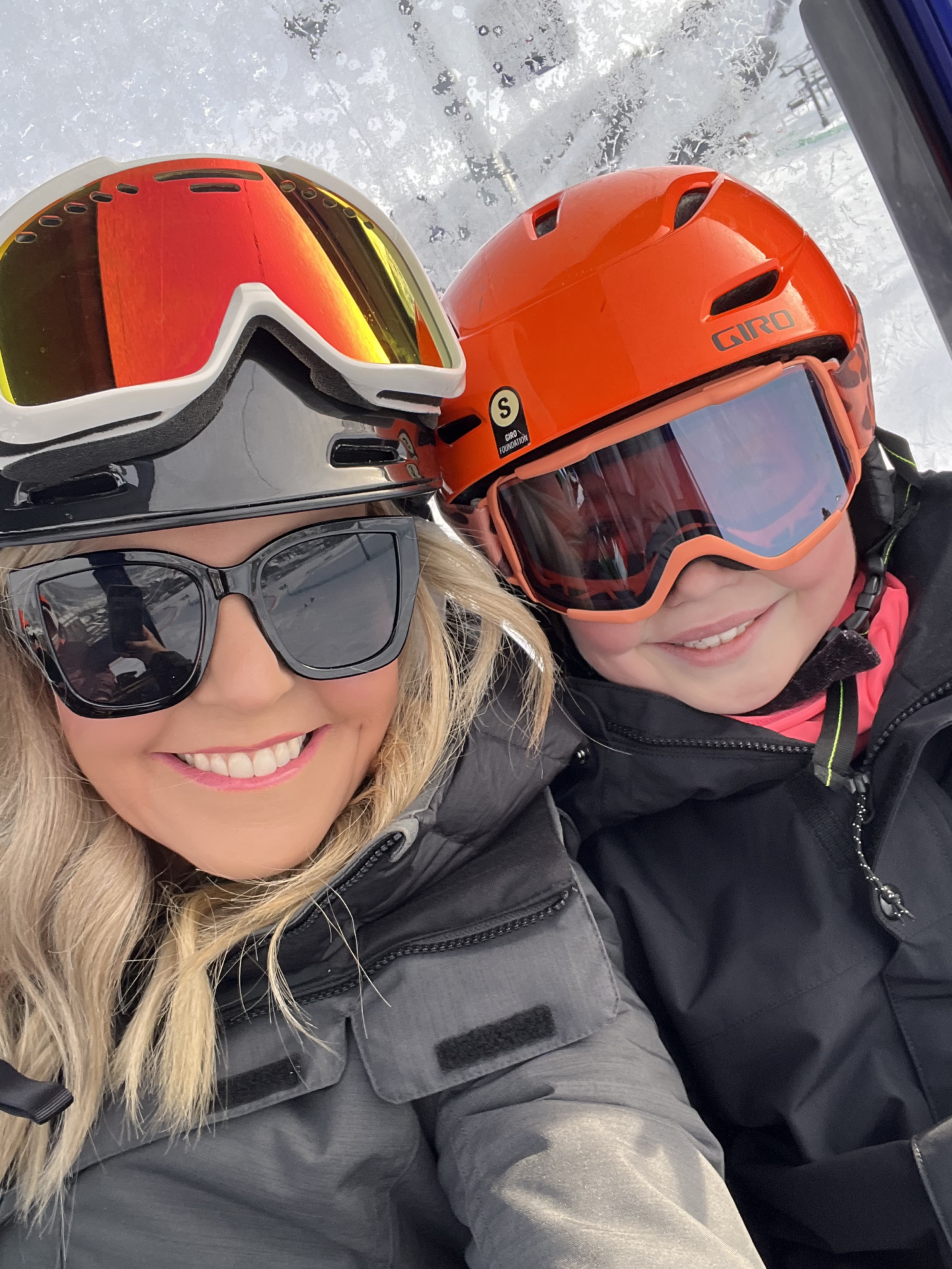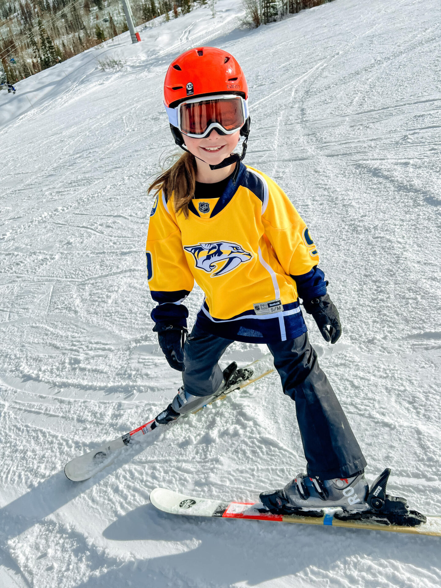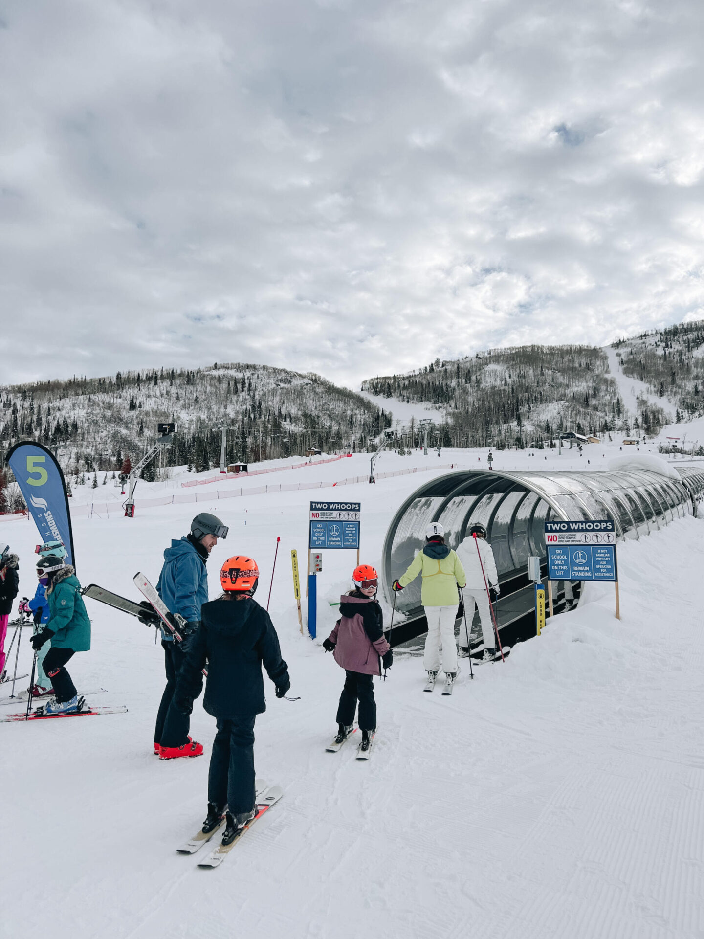 Since this was the first time any of our kids were going to ski/snowboard, we went the professional route and scheduled full-day private instruction. Yes, it’s pricey, BUT worth it’s weight in gold in that we dropped them off at 9AM and by the time we met up for lunch at 1PM, my girls were already heading down the bunny slopes with their instructor Mr. Kurt. He was INCREDIBLE with them… giving them all the tools on ski lifts, putting on/taking off their skis, teaching them how to be on the lookout for others on the mountain and definitely help calem their fears. Our main goal for this first trip was to get them enjoying skiing and it went so well.