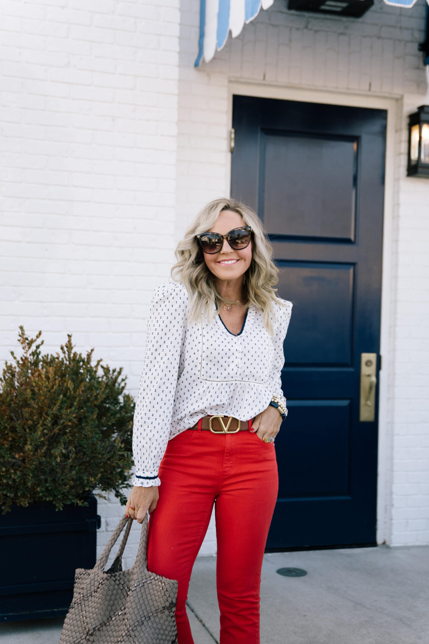 I first styled these bright red jeans as a perfect outfit for all things Valentine’s and now I am switching up the colorway to show you another way to wear these knockout kick flare crops. AND they just so happen to be 40% off as well [run TTS/wearing sizs 25].