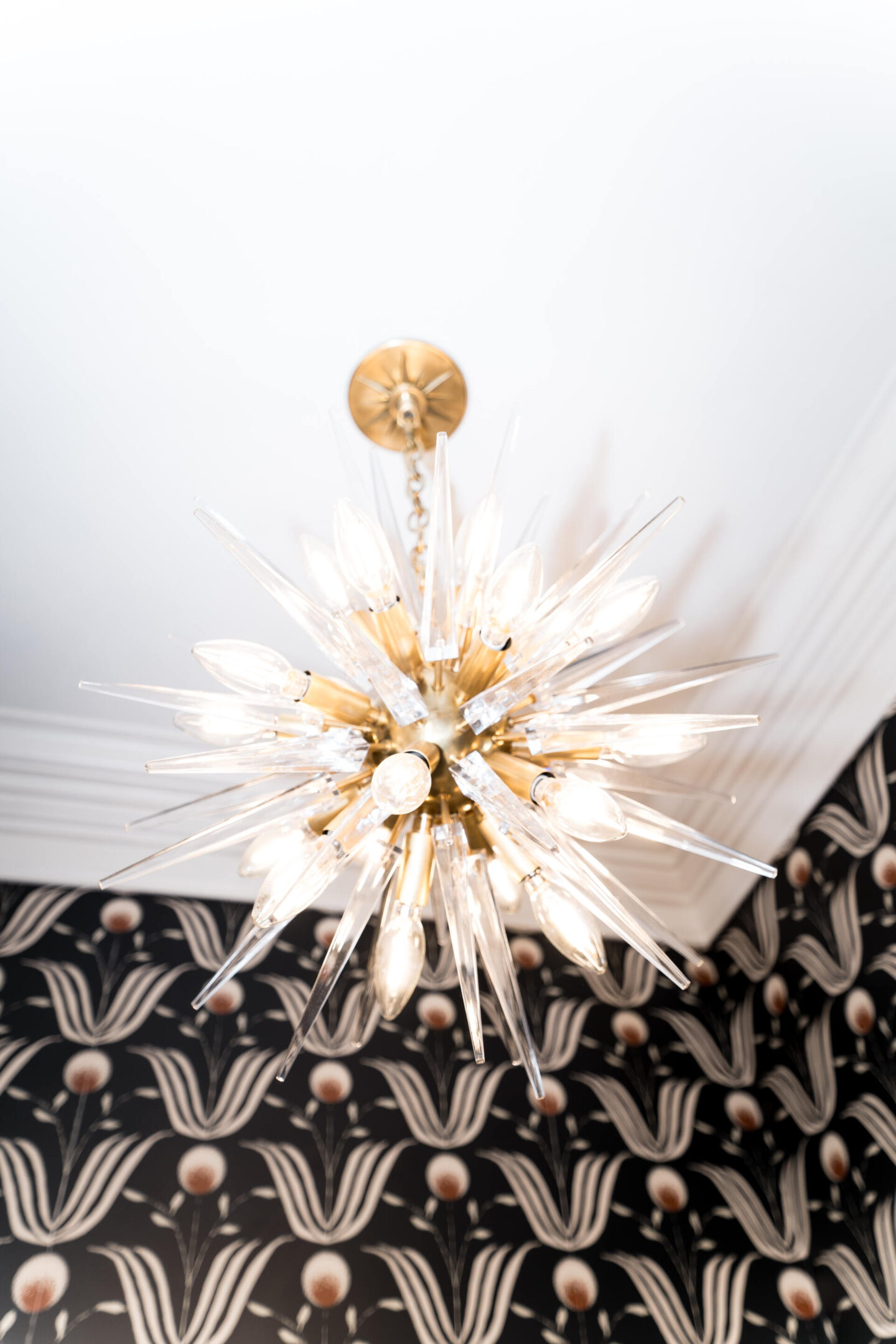 Once I selected the wallpaper, the next thing to come was the lighting. It was time to say goodbye to the silver sconces and classic looking chandelier for something a bit bolder with all things GOLD and that’s where my friends at Visual Comfort + Circa Lighting came in to assist: