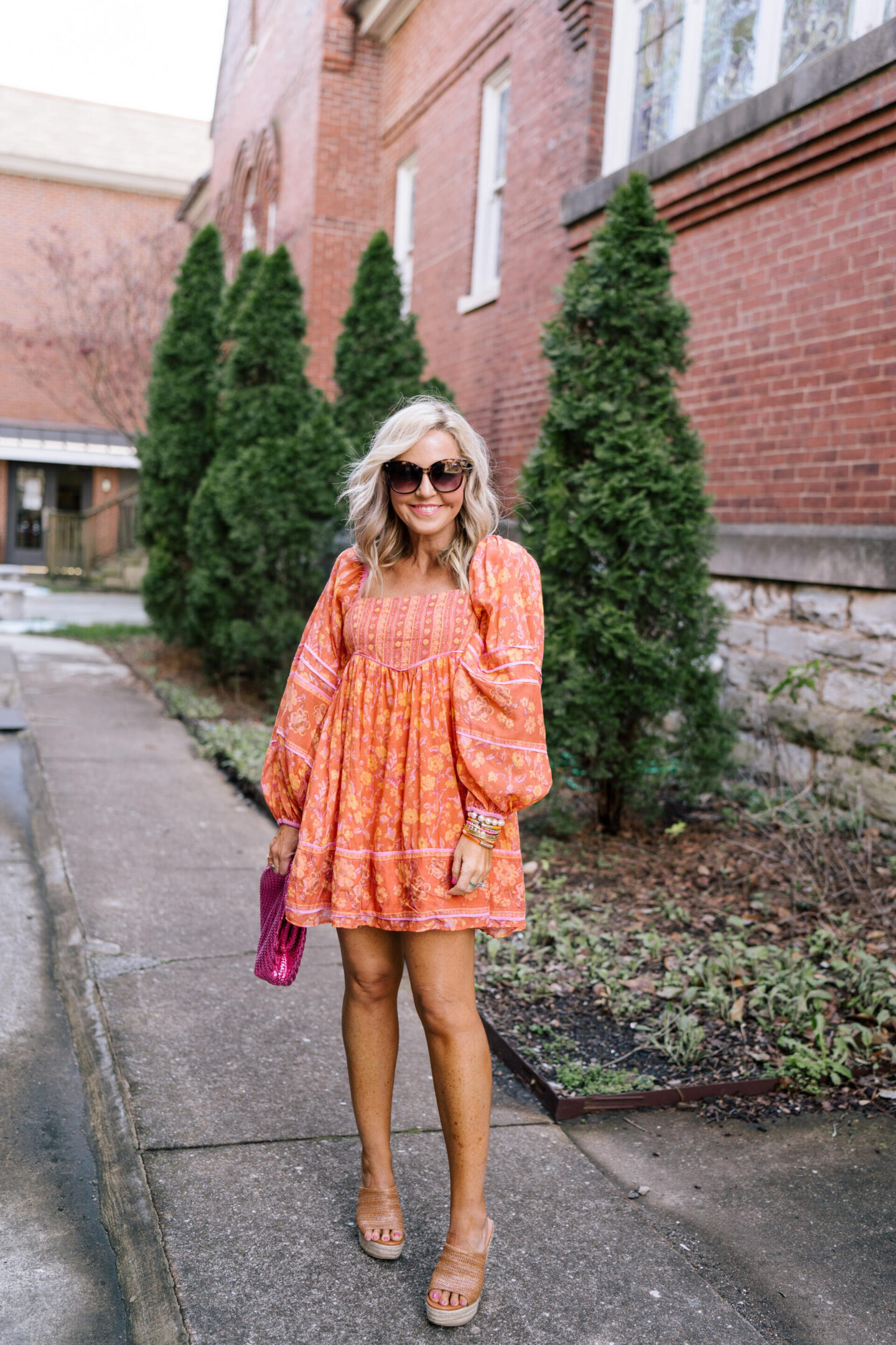- Cotton Midi Dress | Don’t ask me how many colorways I have in this adorable tiered midi dress. The perfect smocked bodice with flutter sleeves, I truly can’t get enough. I sport it on the daily with casual sneakers and a denim jacket and then dress it up with wedges, too.