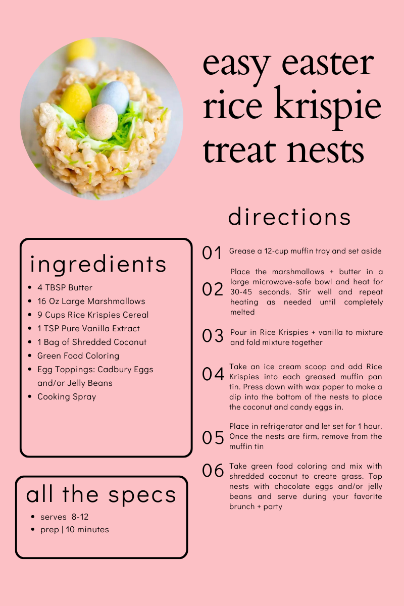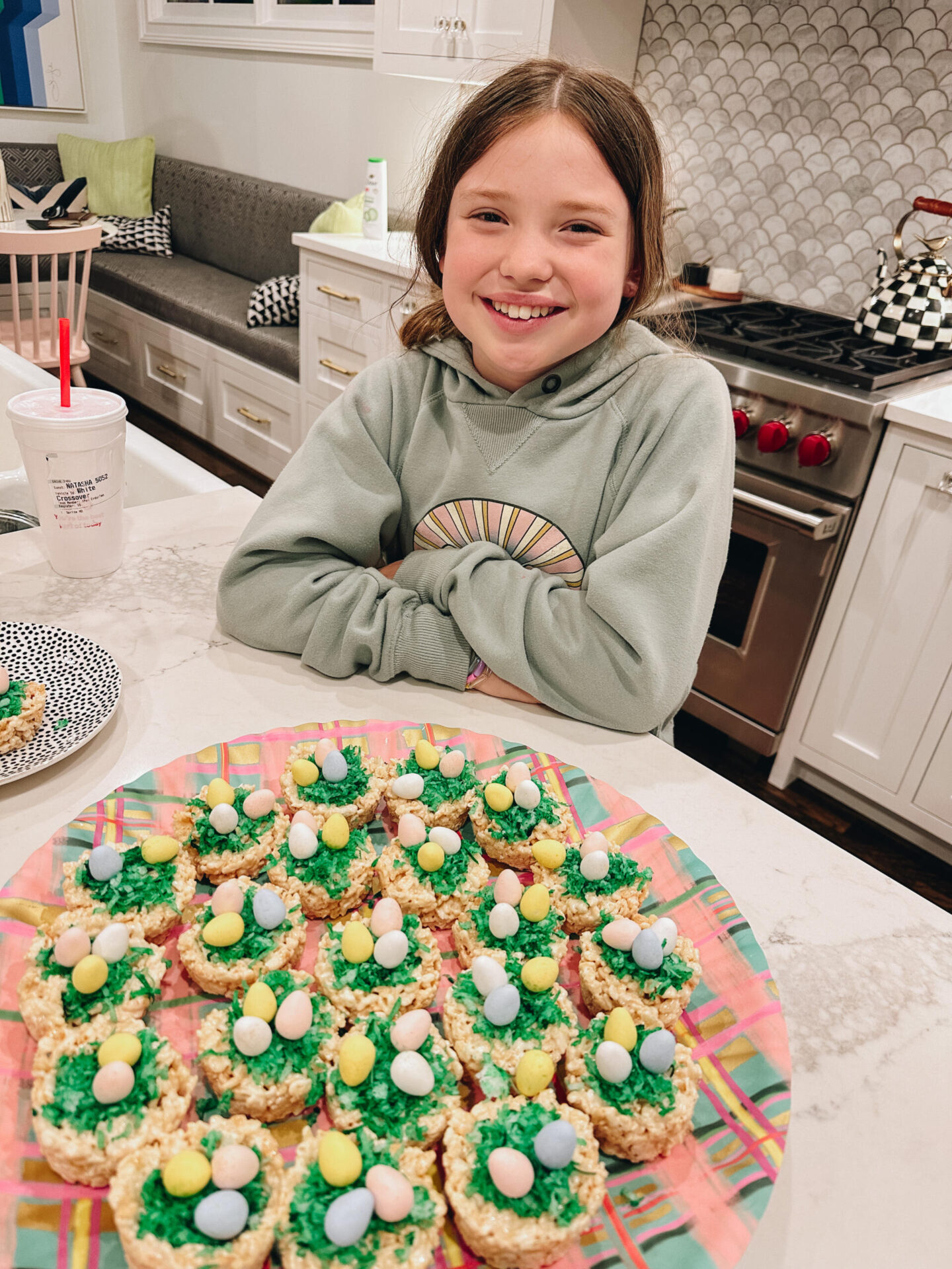 Still on the hunt for the perfect Easter treat to whip up for your little bunnies?? Caroline and I decided to create these cute little spring-inspired rice krispie nests for our bunco group’s egg hunt extravaganza today with our friends and they are absolutely adorable.