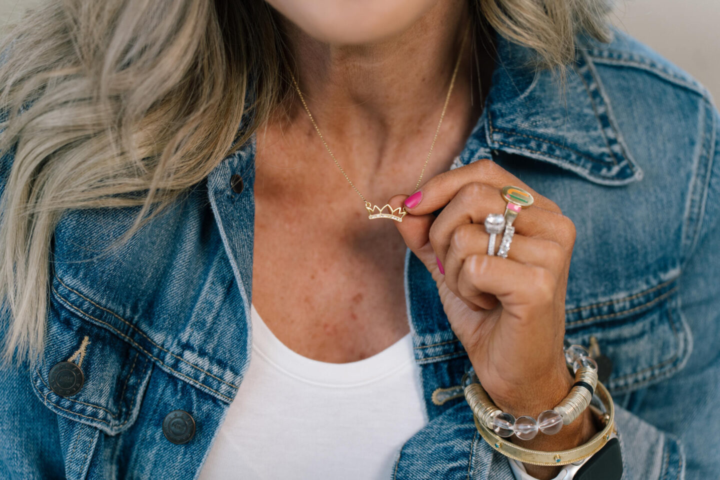 Backing up a bit, our inital conversations started in summer 2022 when I let them know about my idea and my hope for this custom collaboration. Then, creative director Tara and her team got to work, sketching out potential designs not only for an adult crown necklace, but one for the little ladies as well. Once we had finalized the details in late 2022, I got to see the samples for myself and then we tweaked details to make it 100% fabulous, feminine and fun.